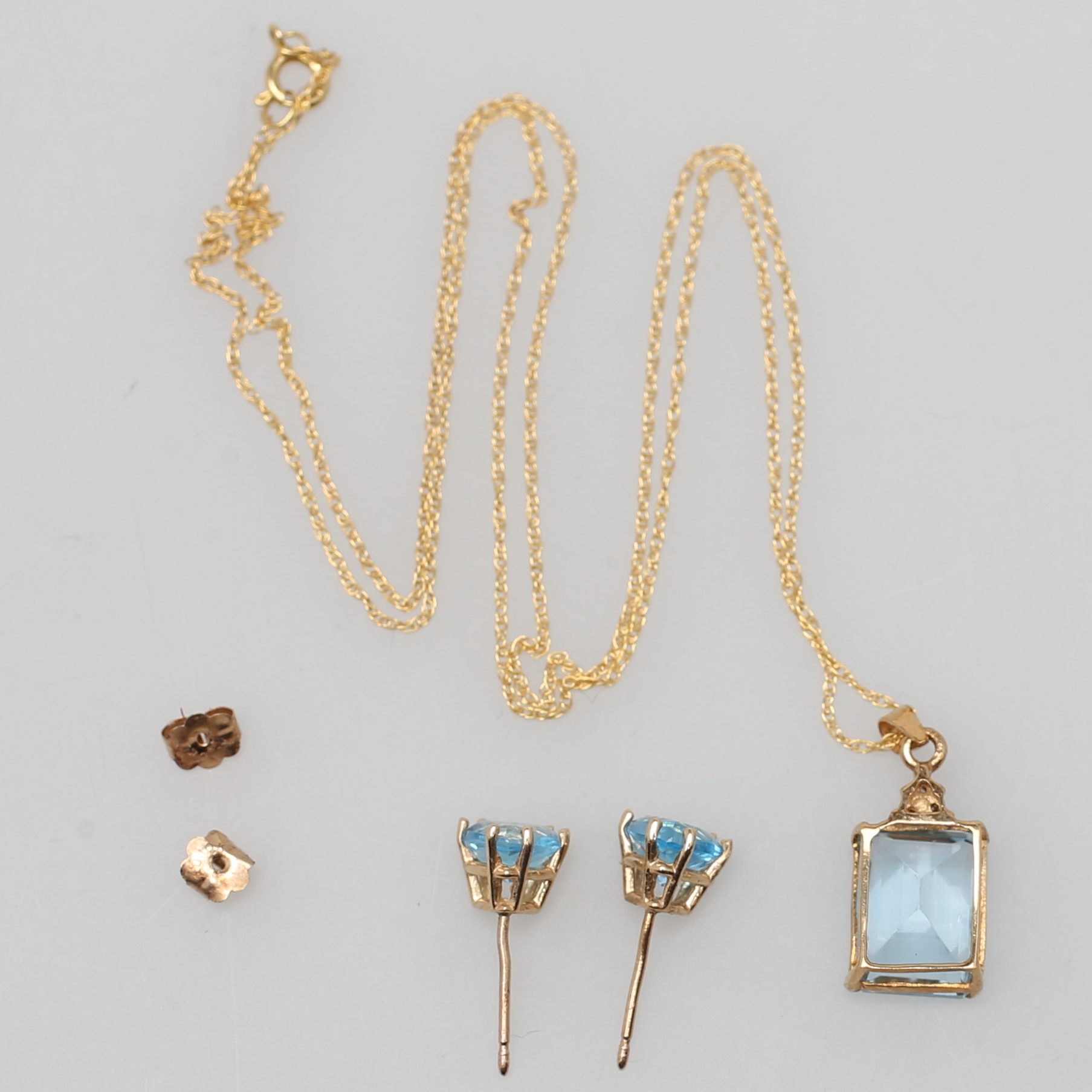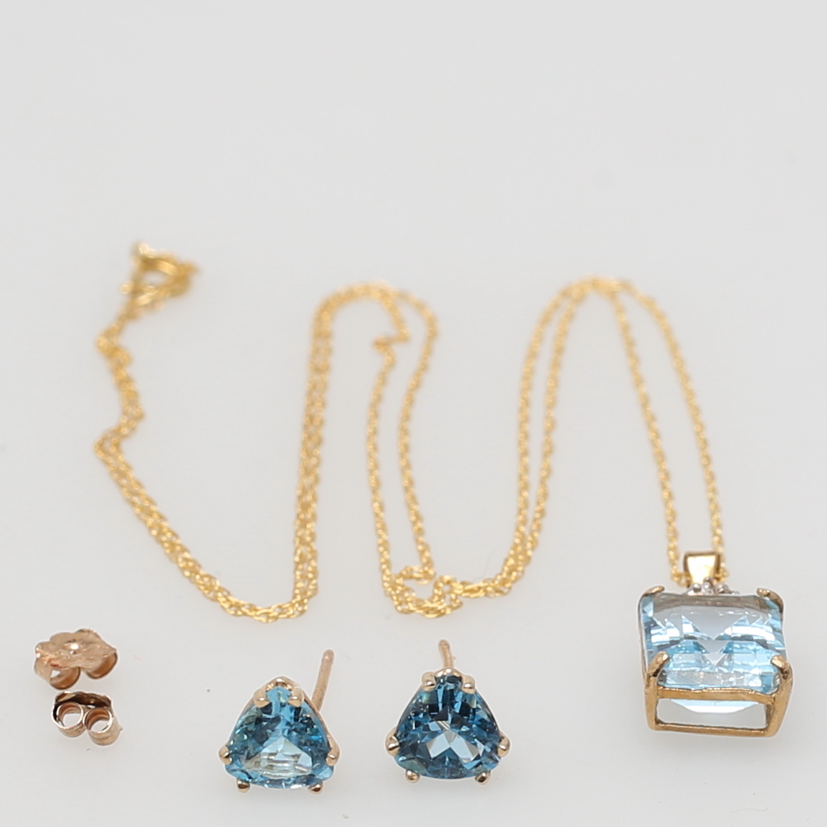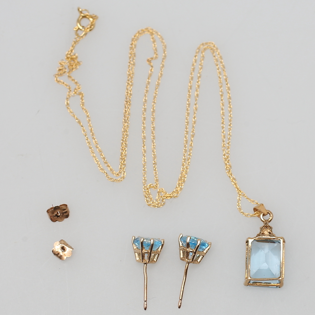 184846. HALSKÆDE og ØRERINGE, med blå topaser.