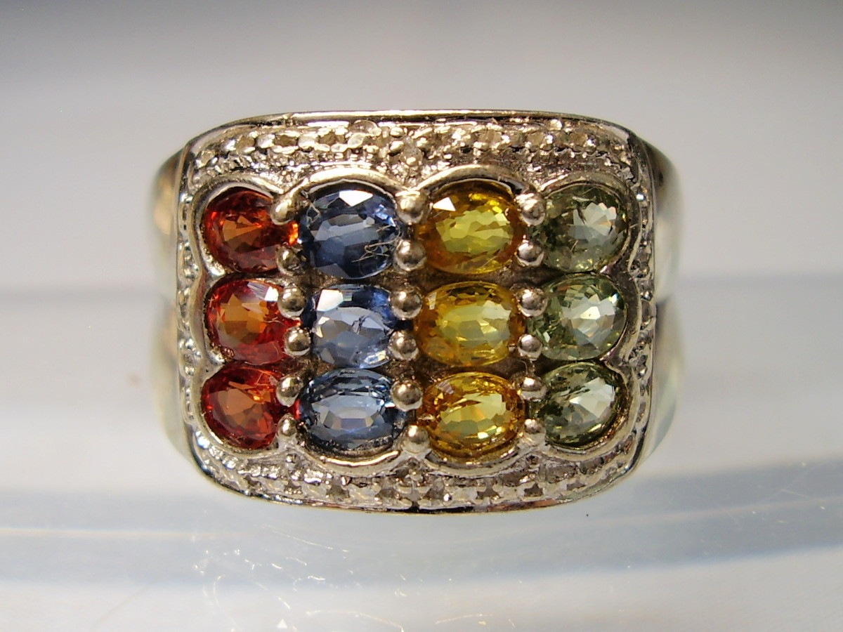 1849263. SAPPIR FLERFARVE RING SØLV HARRY IVENS.