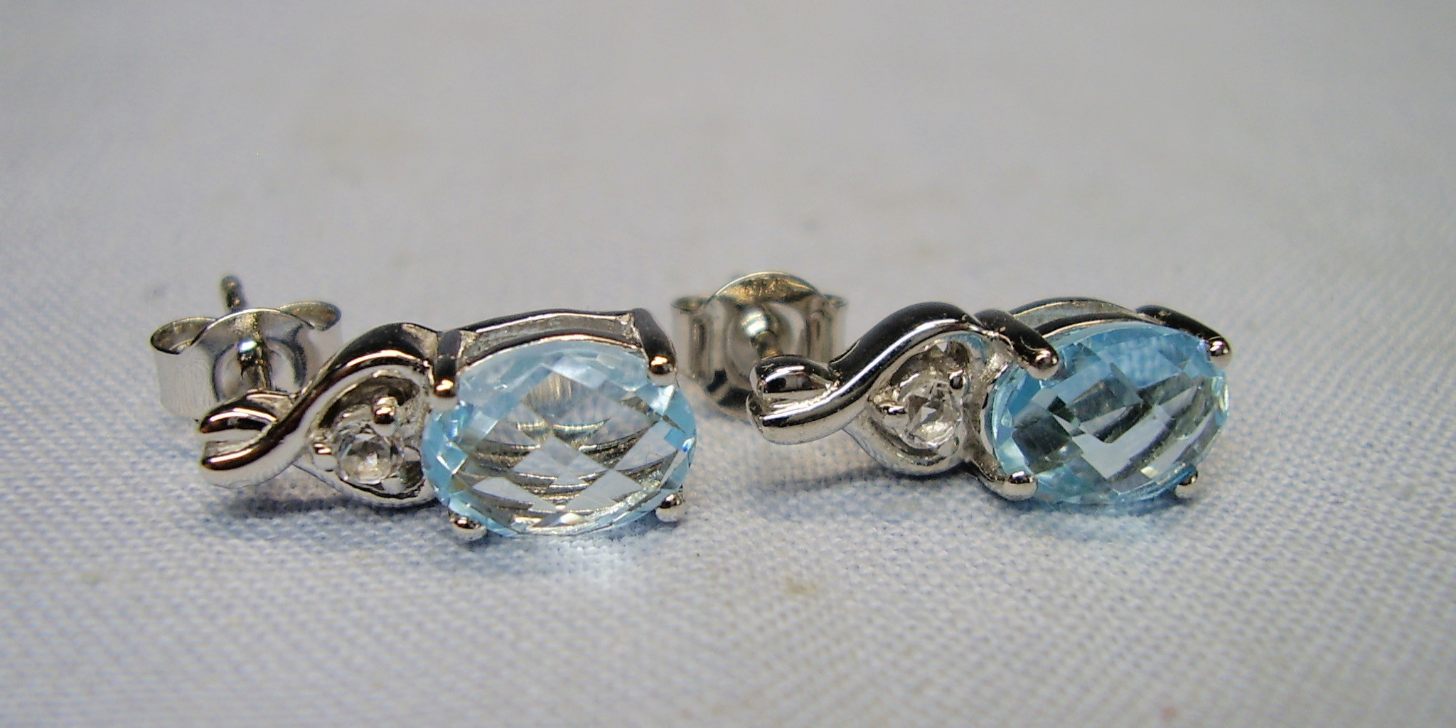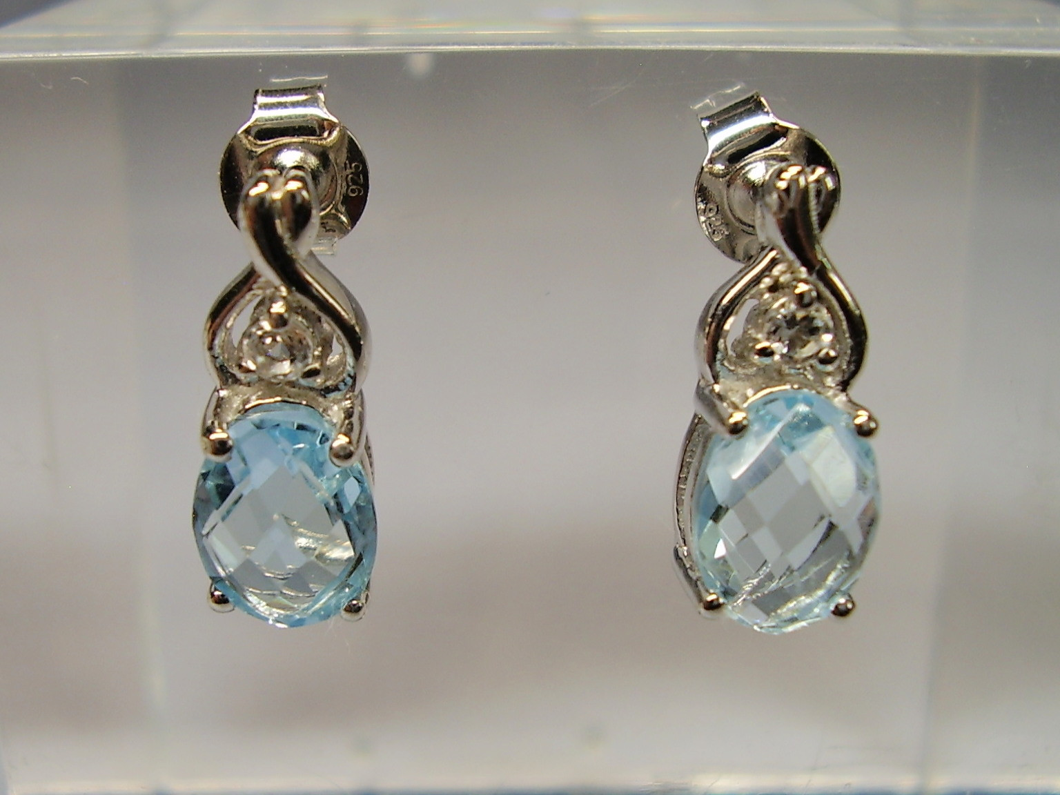 1853337. BLÅ TOPAZ ØRESTYKKER SØLV 5 ct. blå topas.
