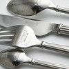 Bestående af 6 skeer (19 cm), 6 gafler (18 cm), 6 knive (20 cm), 6 teskefulde (12 cm).