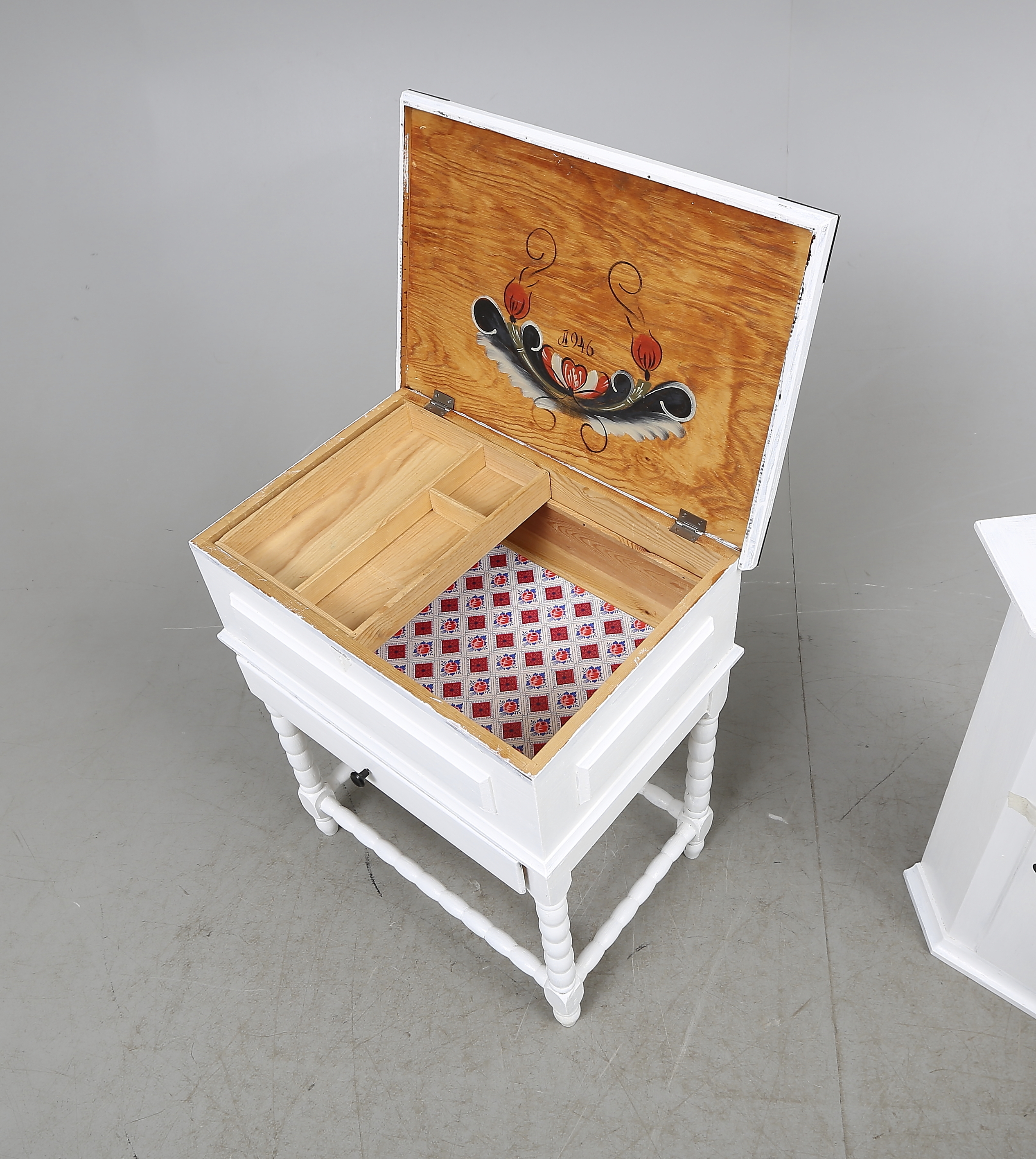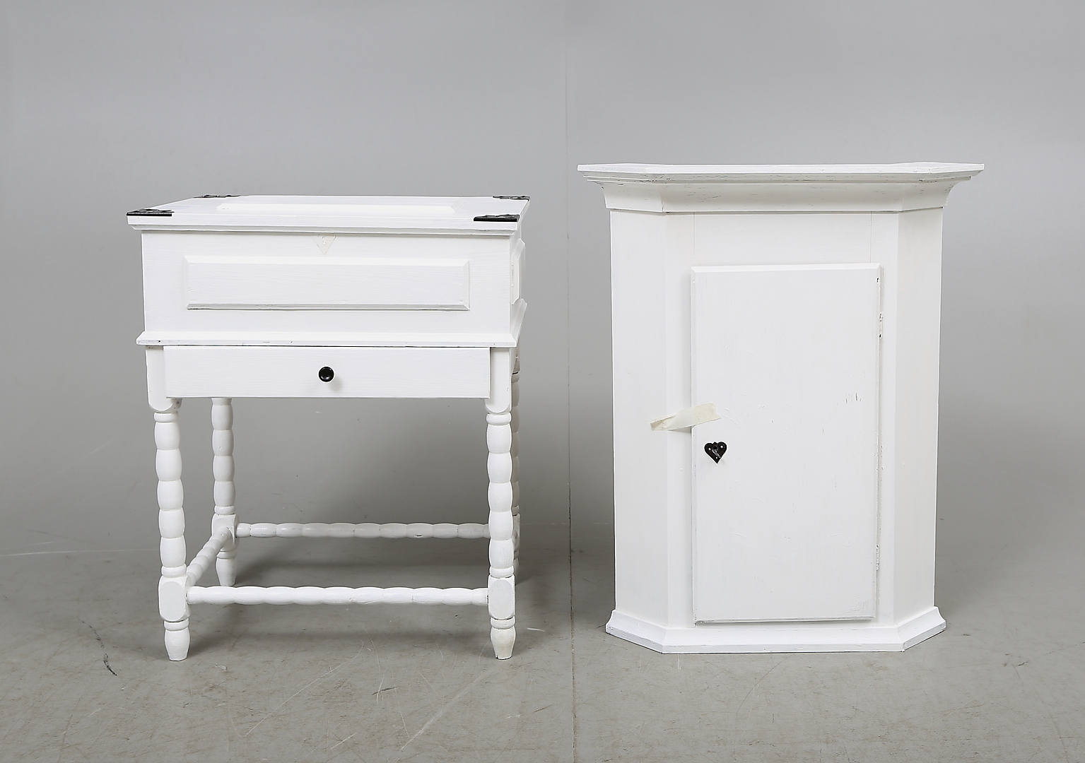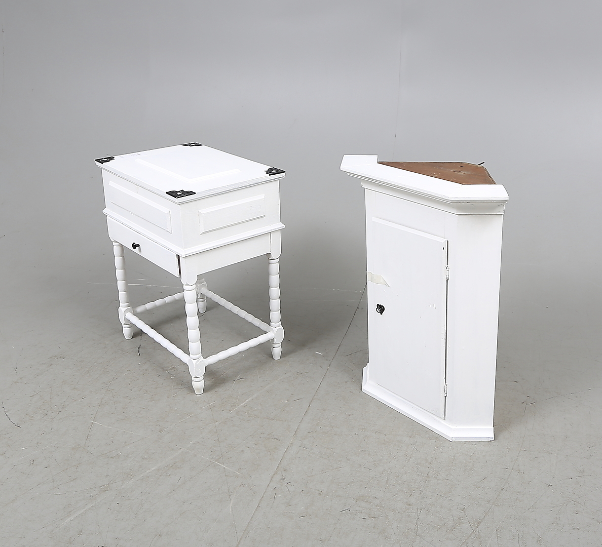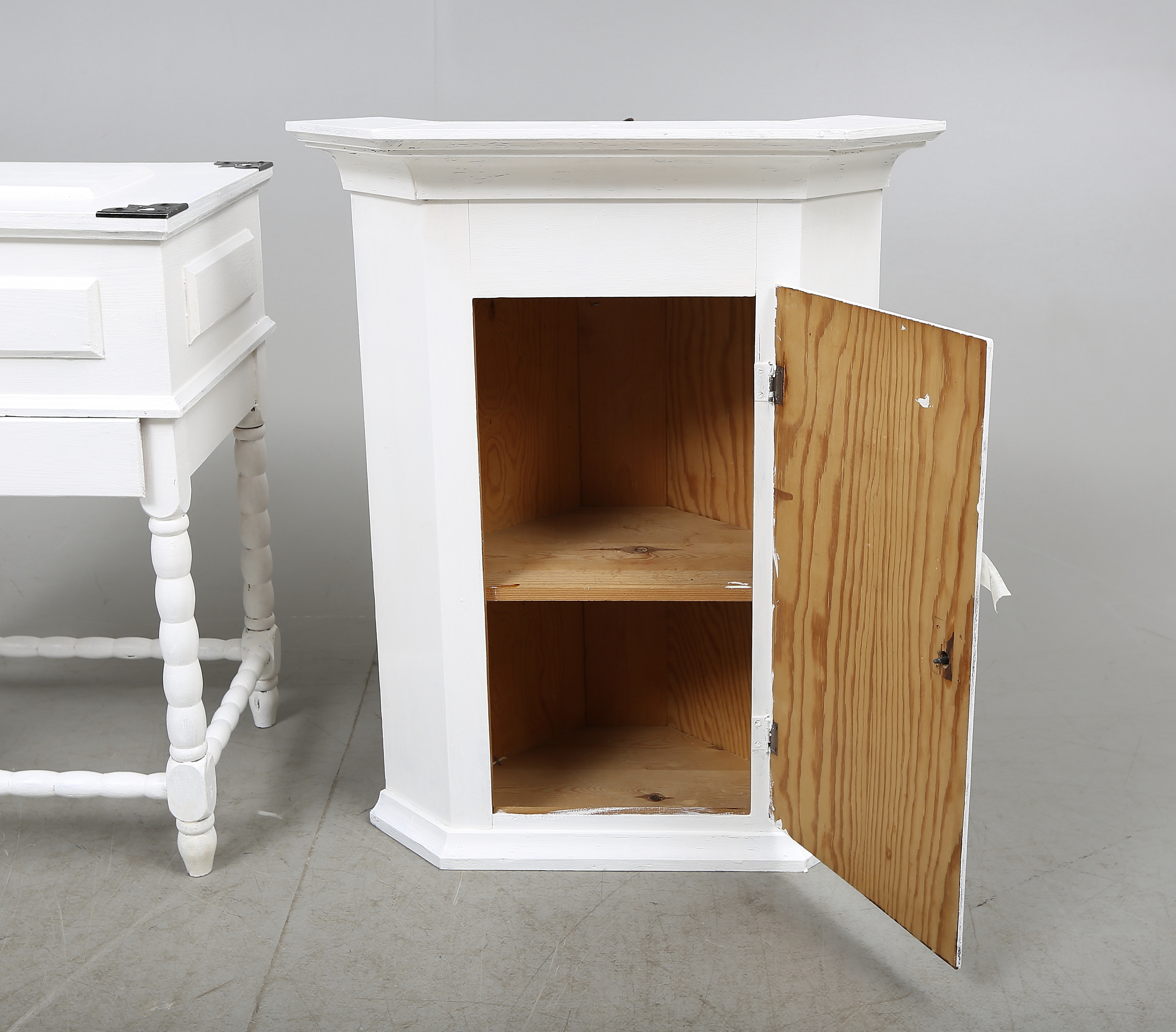 185647. SYSCHATULL og HJØRNESKAB, hvidmalet, 1900-tallet.