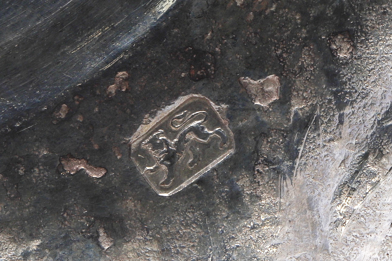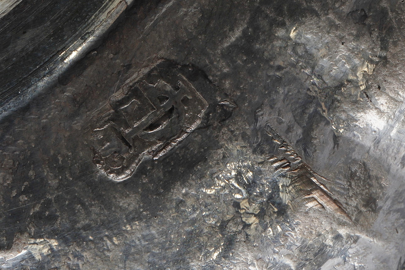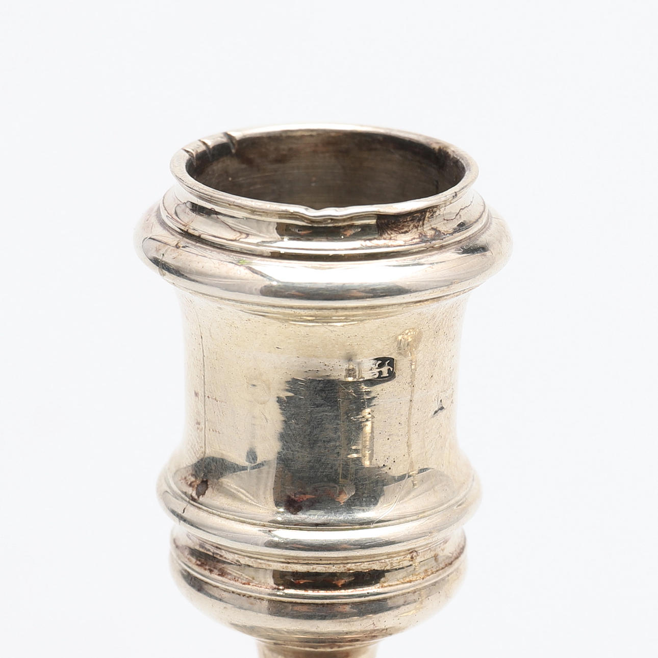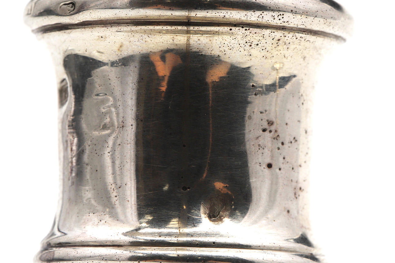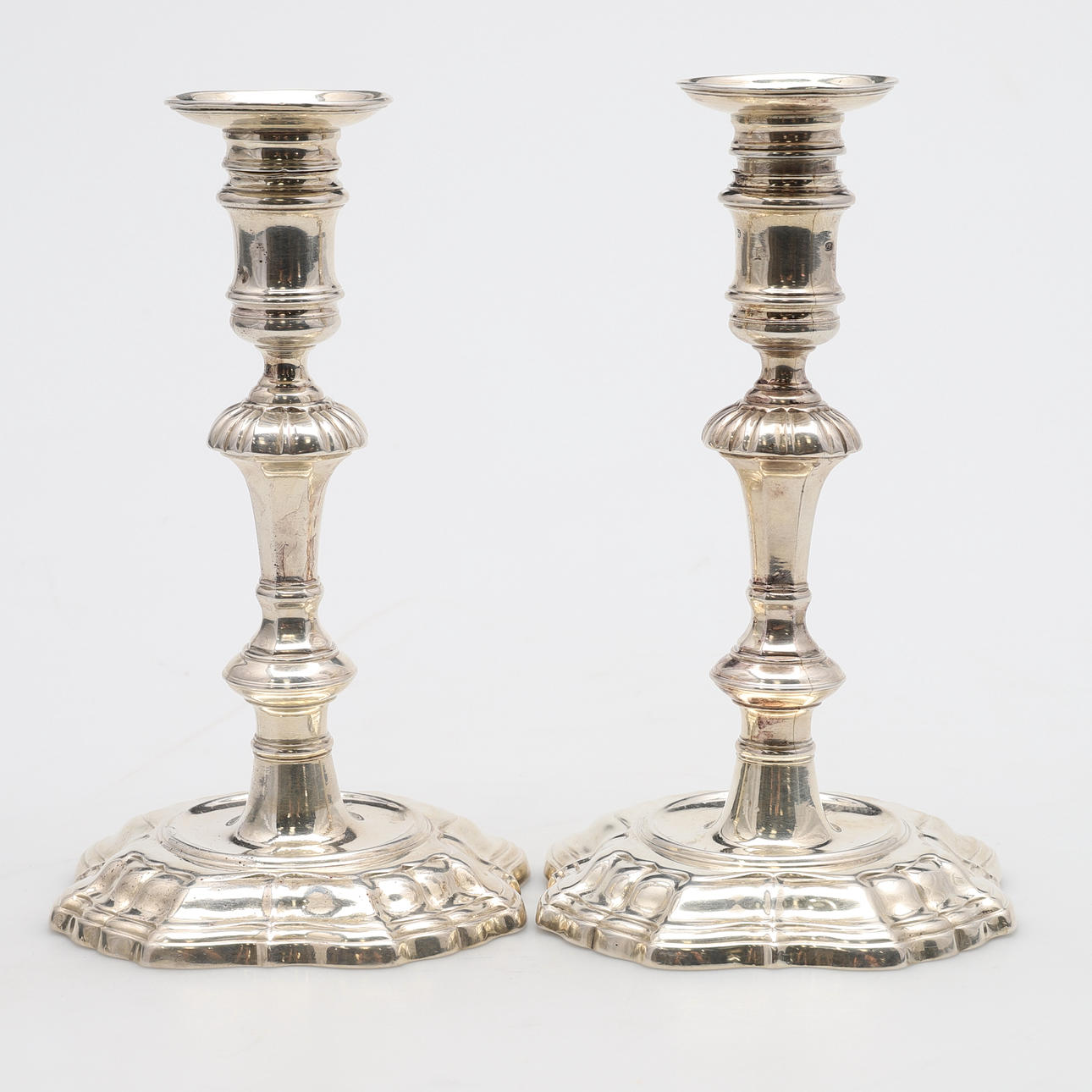 de ringformede cylindriske dyser på ottekantede knoppede stilke og firkantede trinbaser, indgraverede moderne våbenvåben af Boissier af James Gould, stemplet London 1738, senere modslag på dyserne, sammen med et par tilhørende cirkulære aftagelige dryppander, slået med fabrikationsmærket ET og mærke af et ørnehoved.