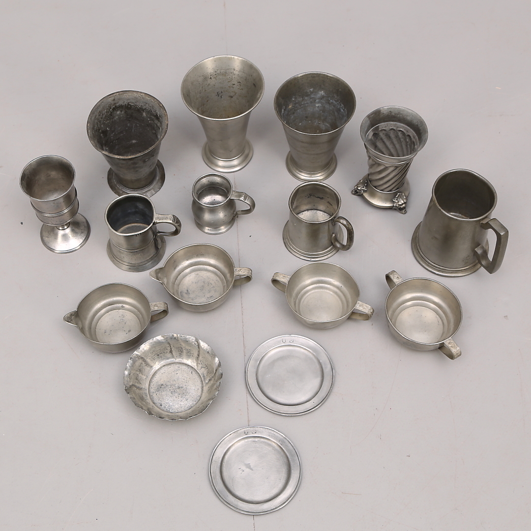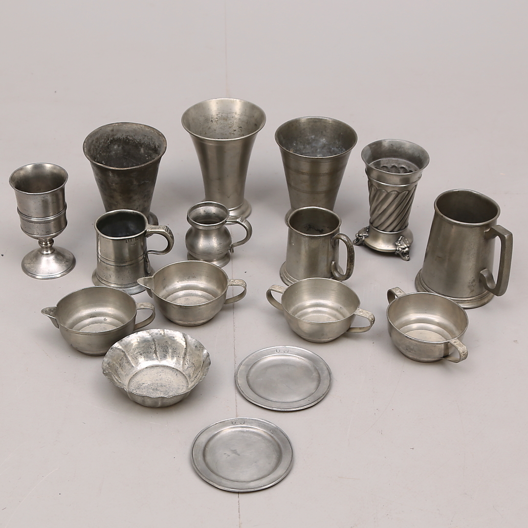 185966. TINN OBJEKTER, 16 stk. Kopper, stop, skåle, fade.