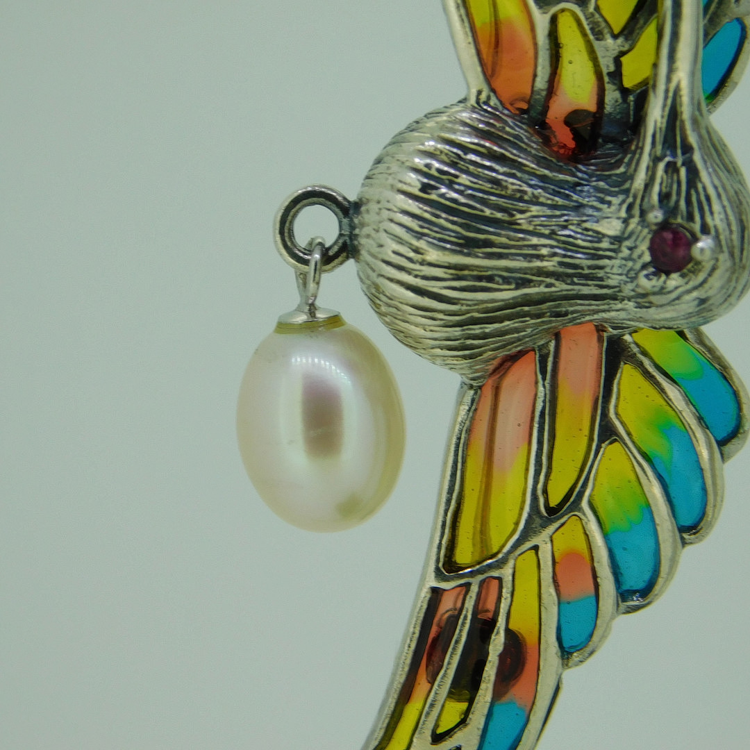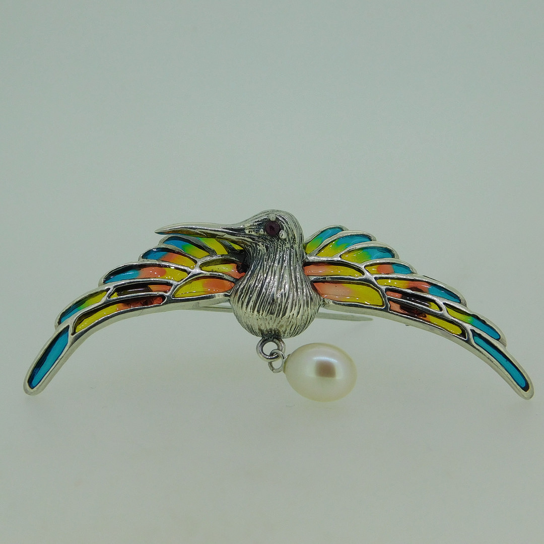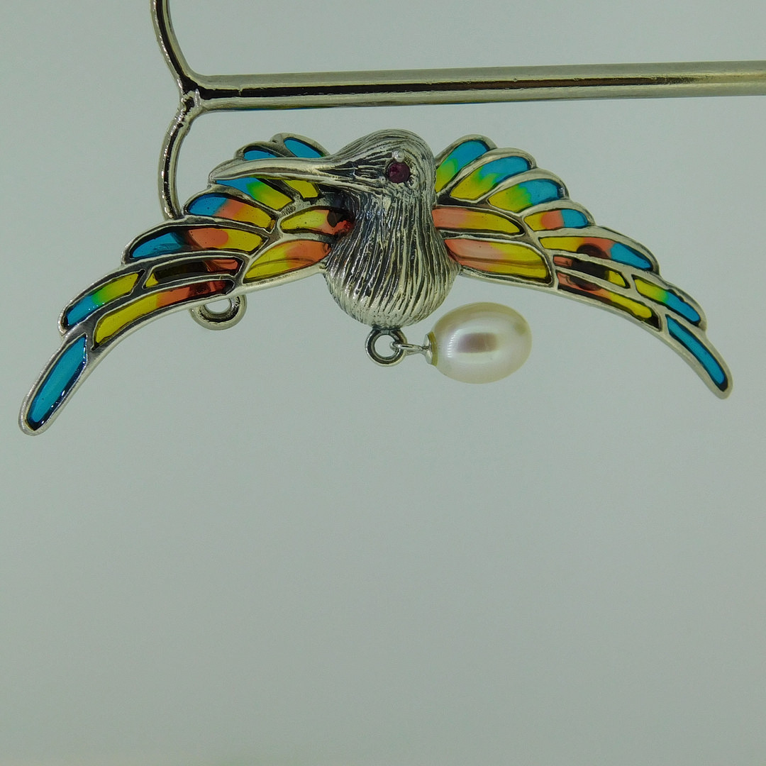 1864159. SØLVKOLIBROCHE / HANDSÆNG.