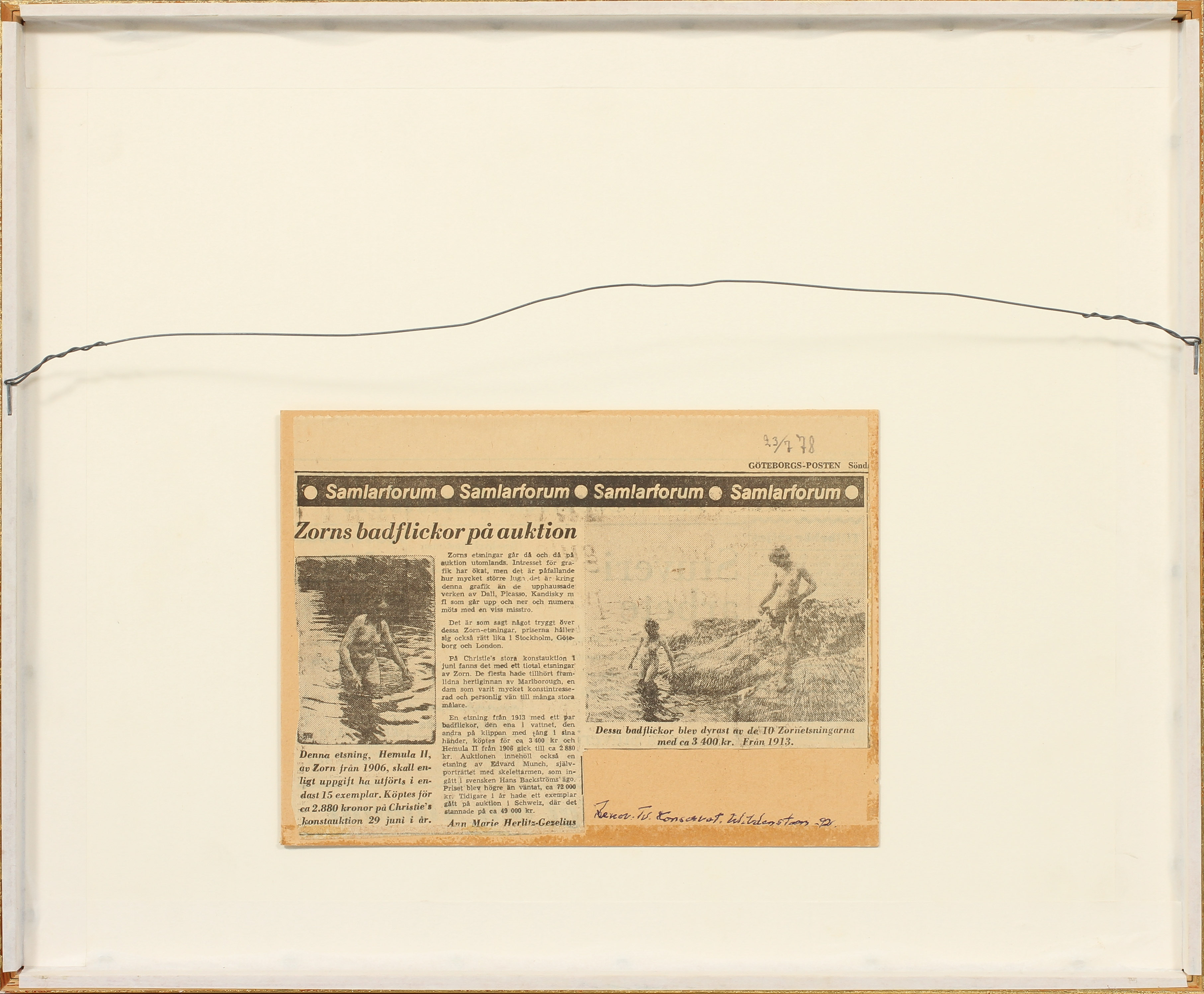 186467. ANDERS ZORN. Ydersnit, radering, tegn.