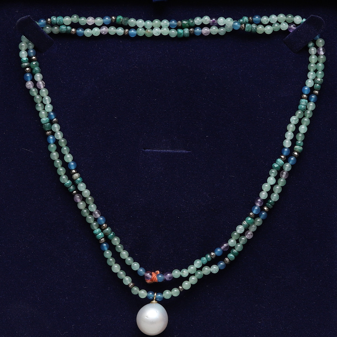 1865556. HALSKÆDE, ædelsten og south sea perle.