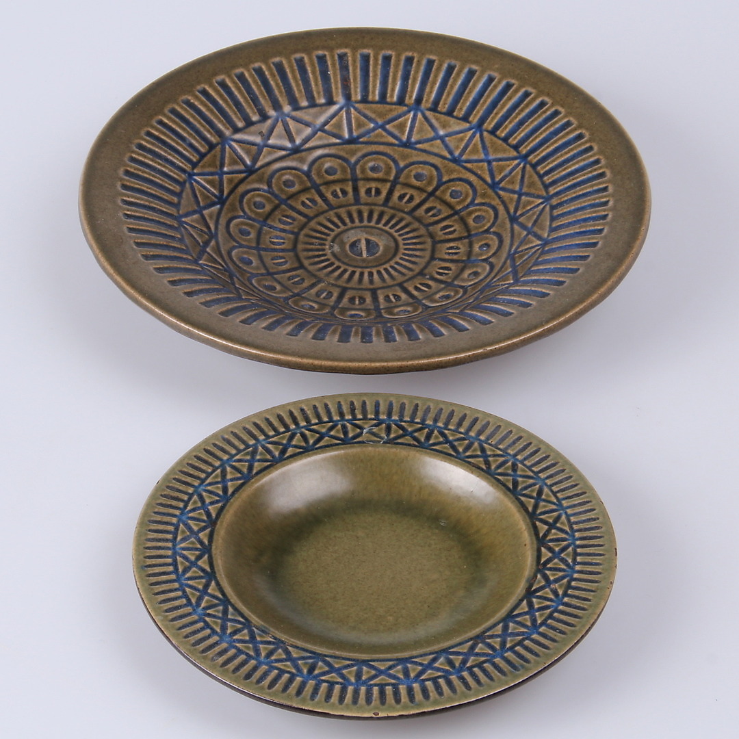 187137. FEDT, 2 st. "Iris", Mari Simmulson, Uppsala Ekeby, 1960'erne.
