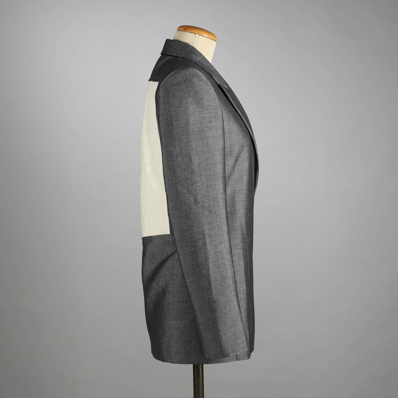 60% mohair, 40% uld. To sidelommer. Ryglængde 74 cm.