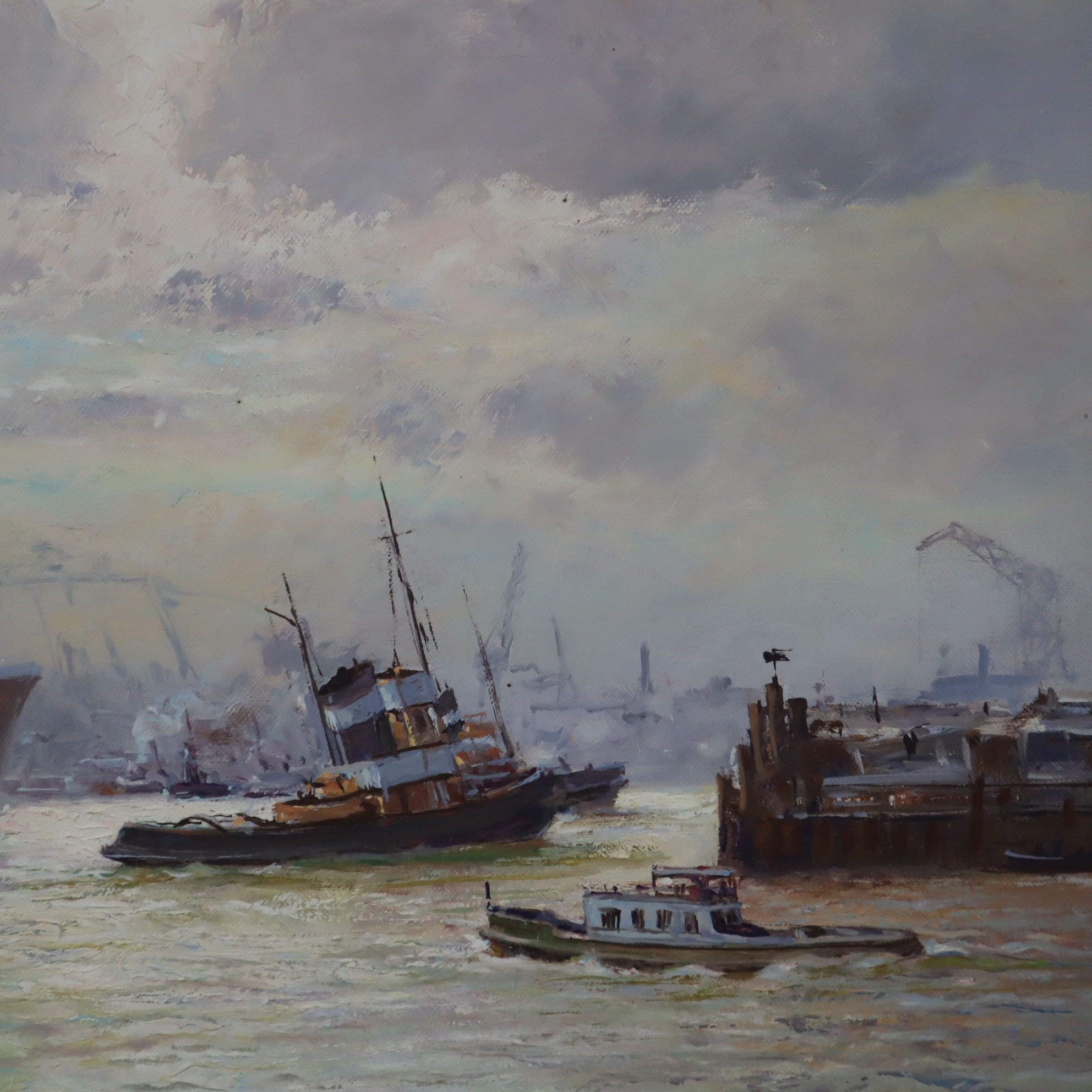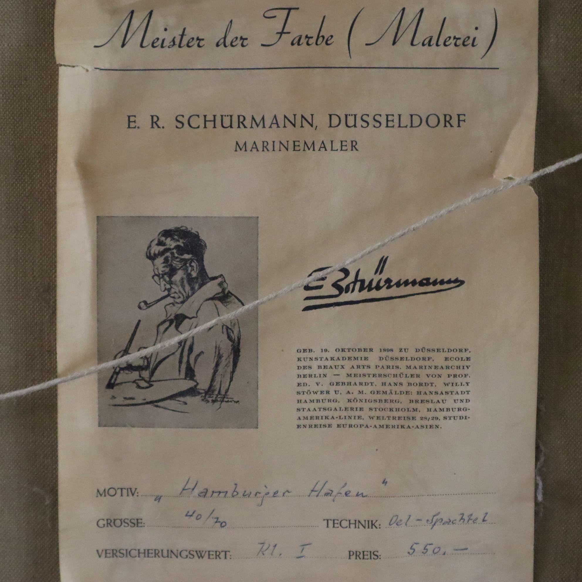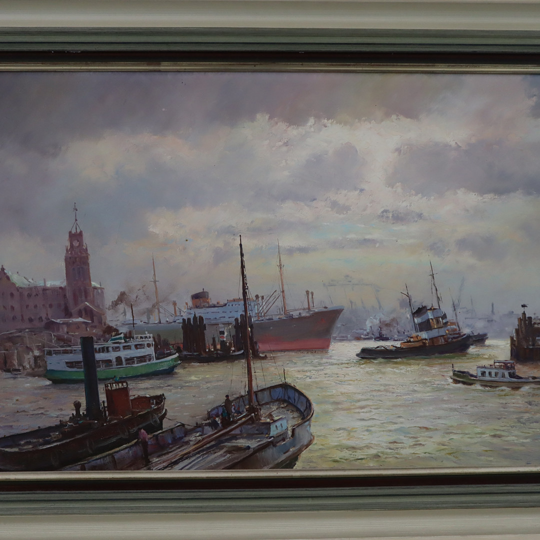 1879158. - SCHÜRMANN, E.R. "Hamburg Harbour", olie på lærred.