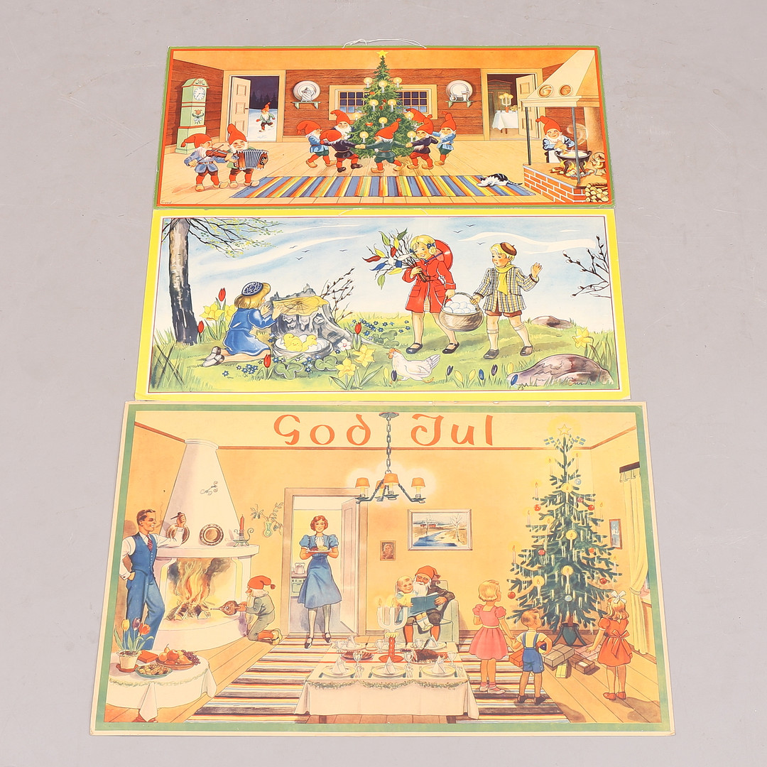 1884692. PLANER, 3 stk, hardboard, påske og jul.