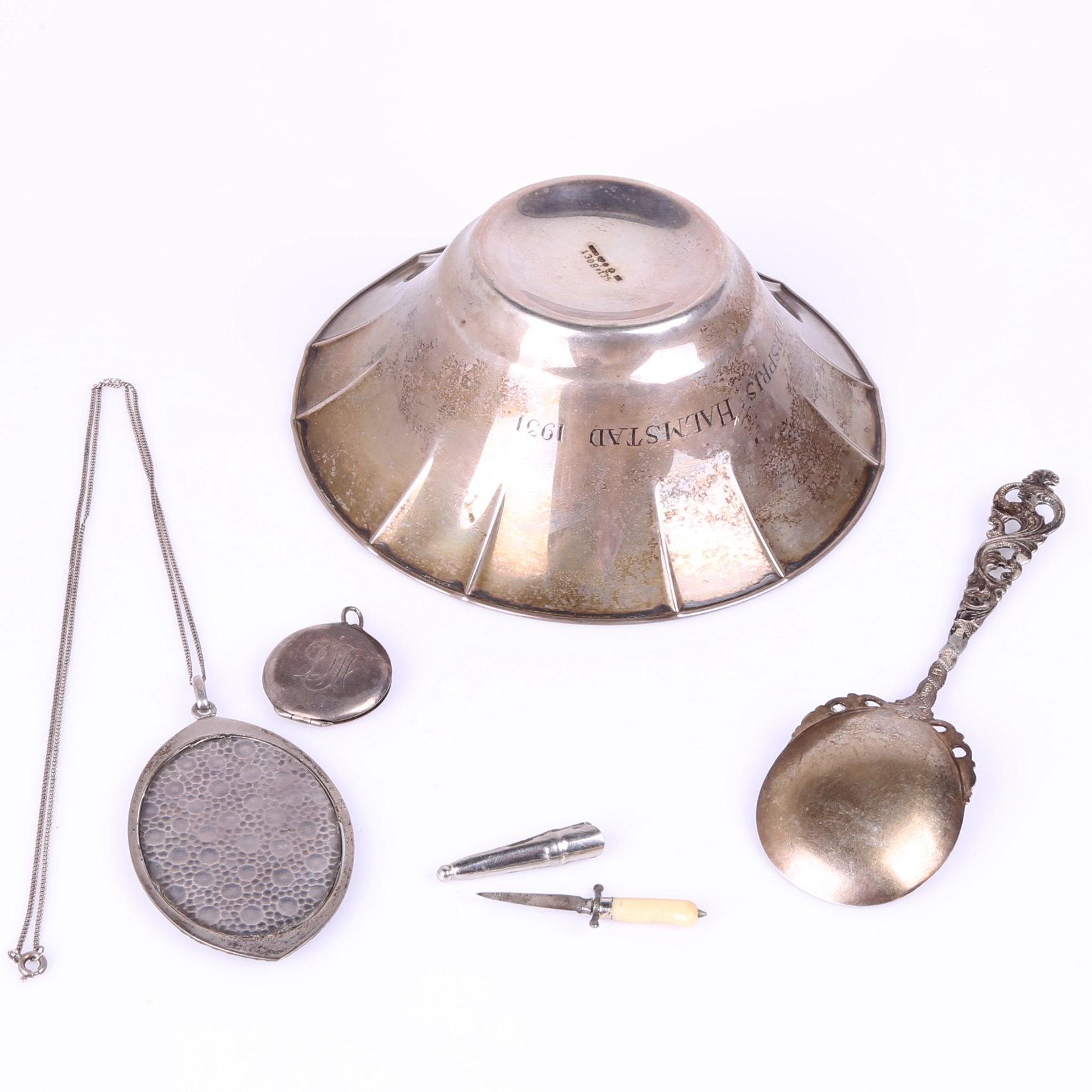 188506. SØLVGENSTANDE, 4 stk 121 gram + MINIATURE DÅRLIG.