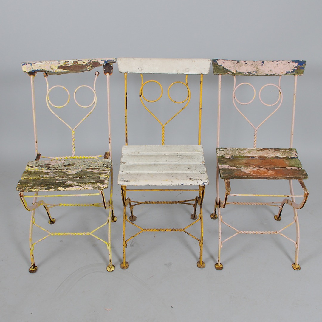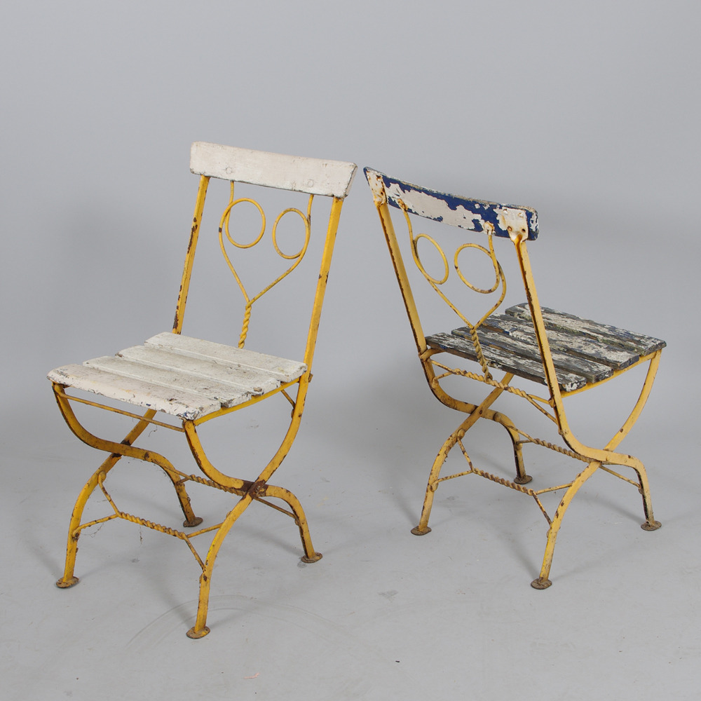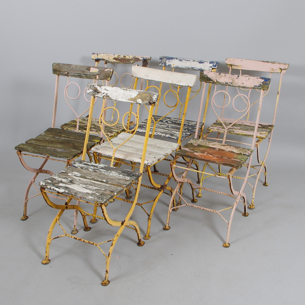 188706. HAVESTOLE, 7 stk., malet smedejern/træ.