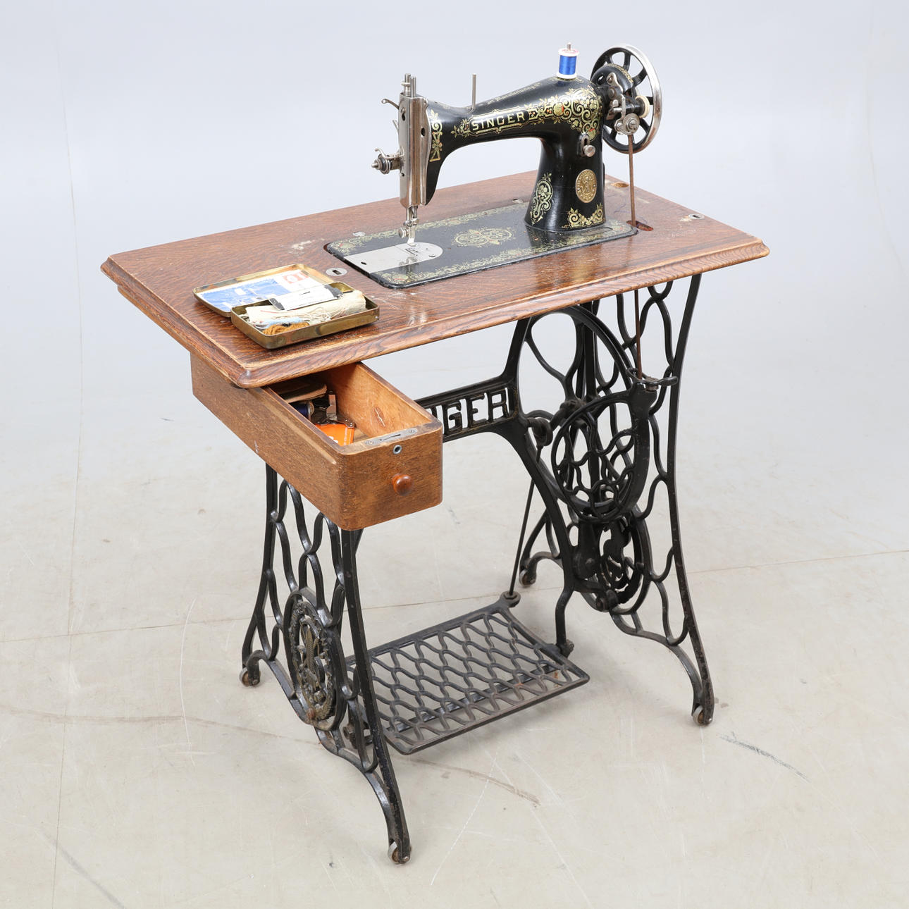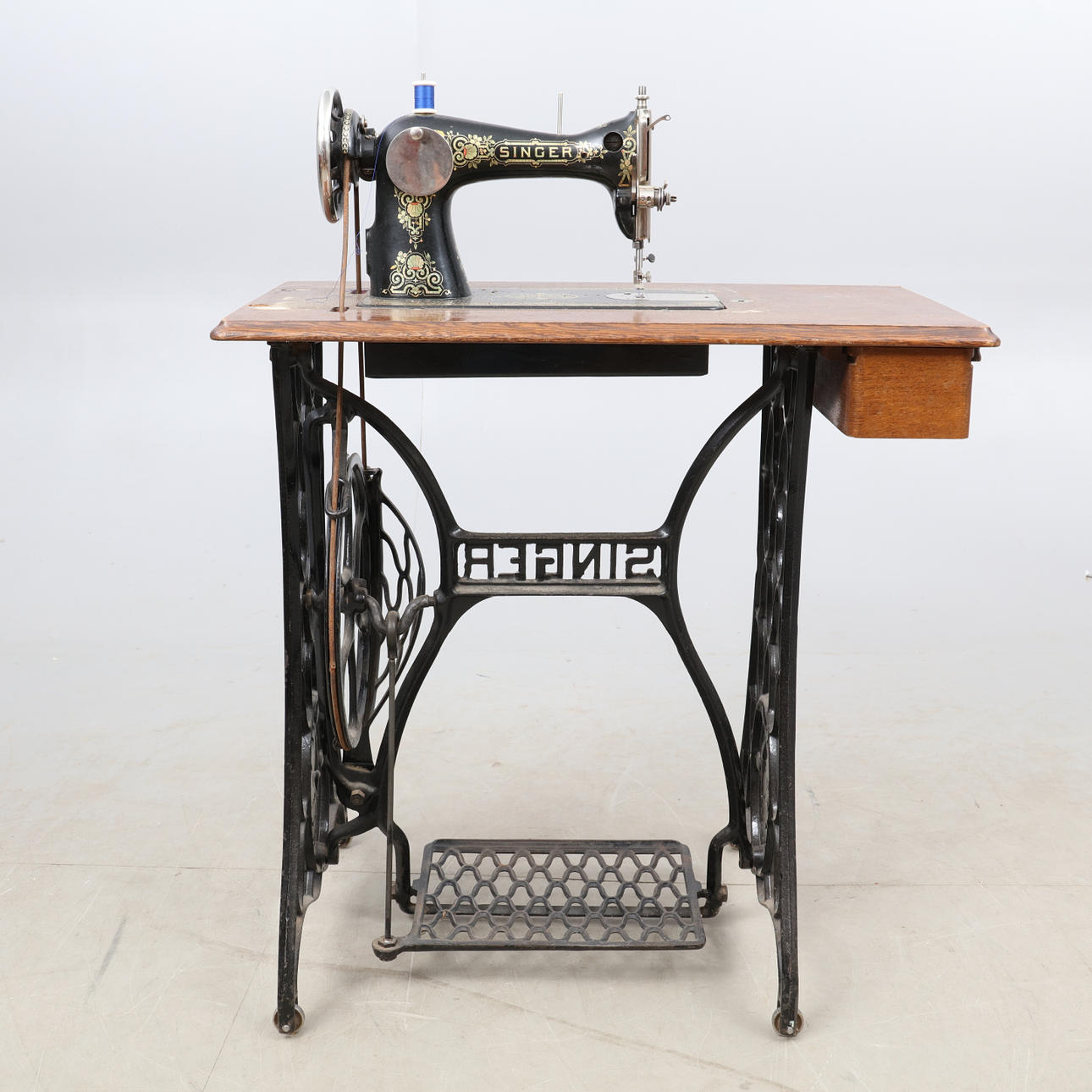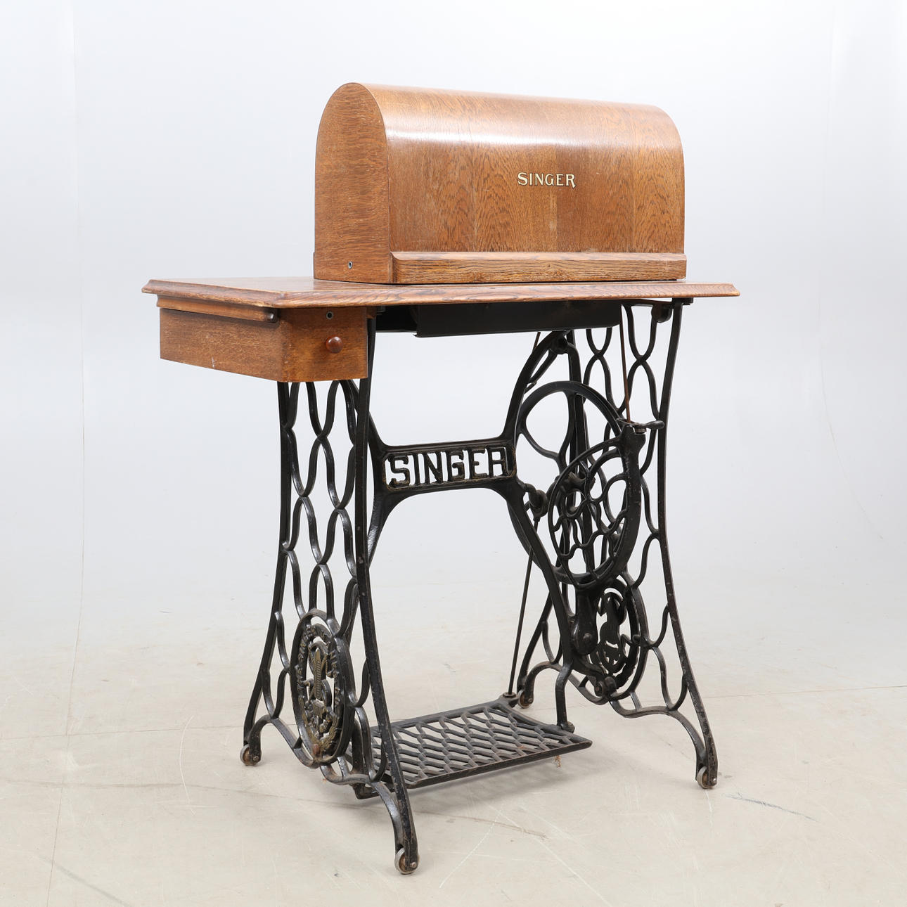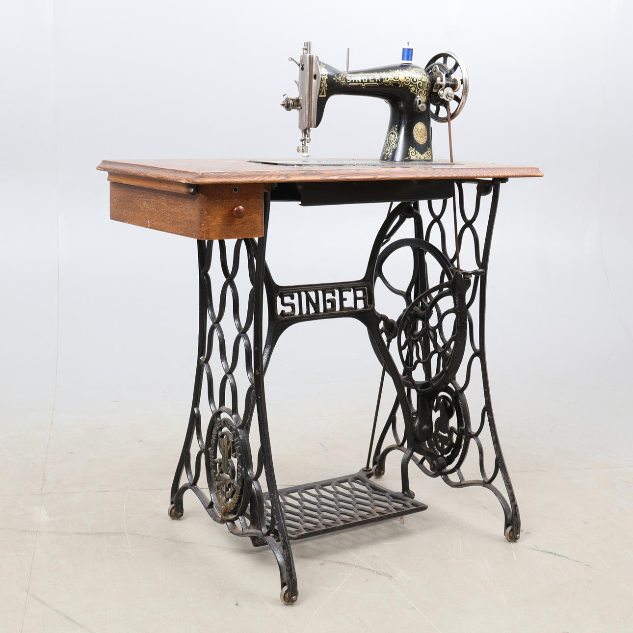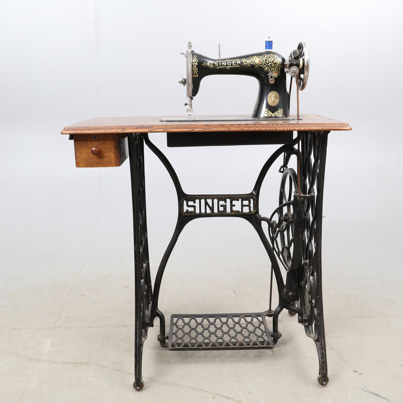 SYMASKINE, på jernstativ, gør SINGER.