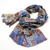 Sjal i vævet uld, ternet mønster i blå, grøn og beige, 70x195 cm.