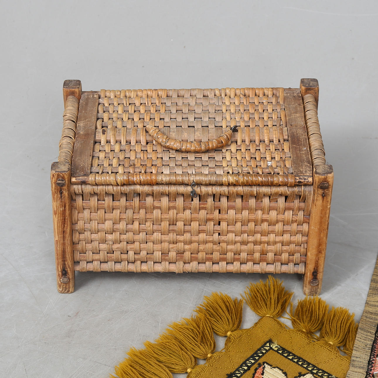 TEKSTIL I EN RATTAN KISTE.