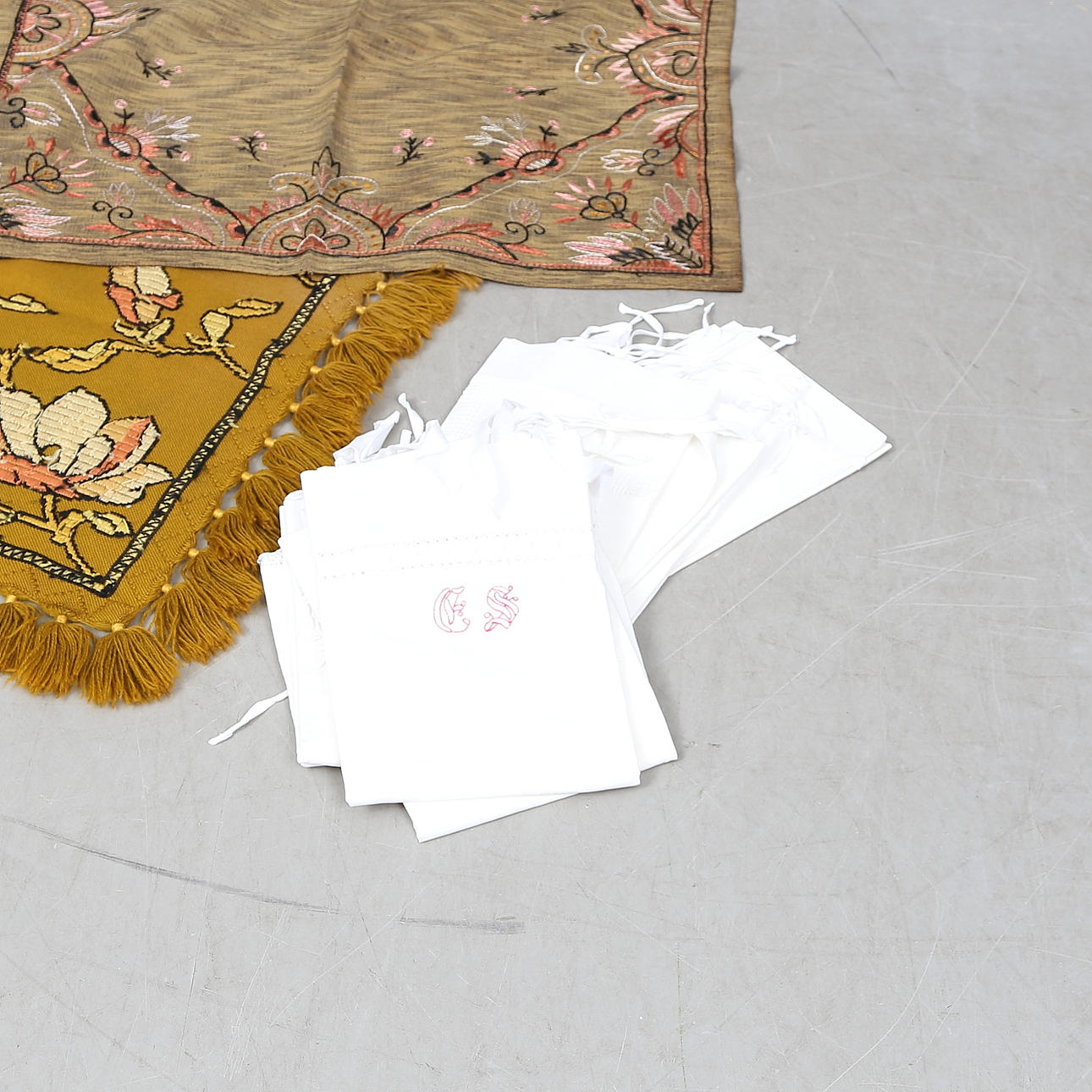 1901052. TEKSTIL I EN RATTAN KISTE.