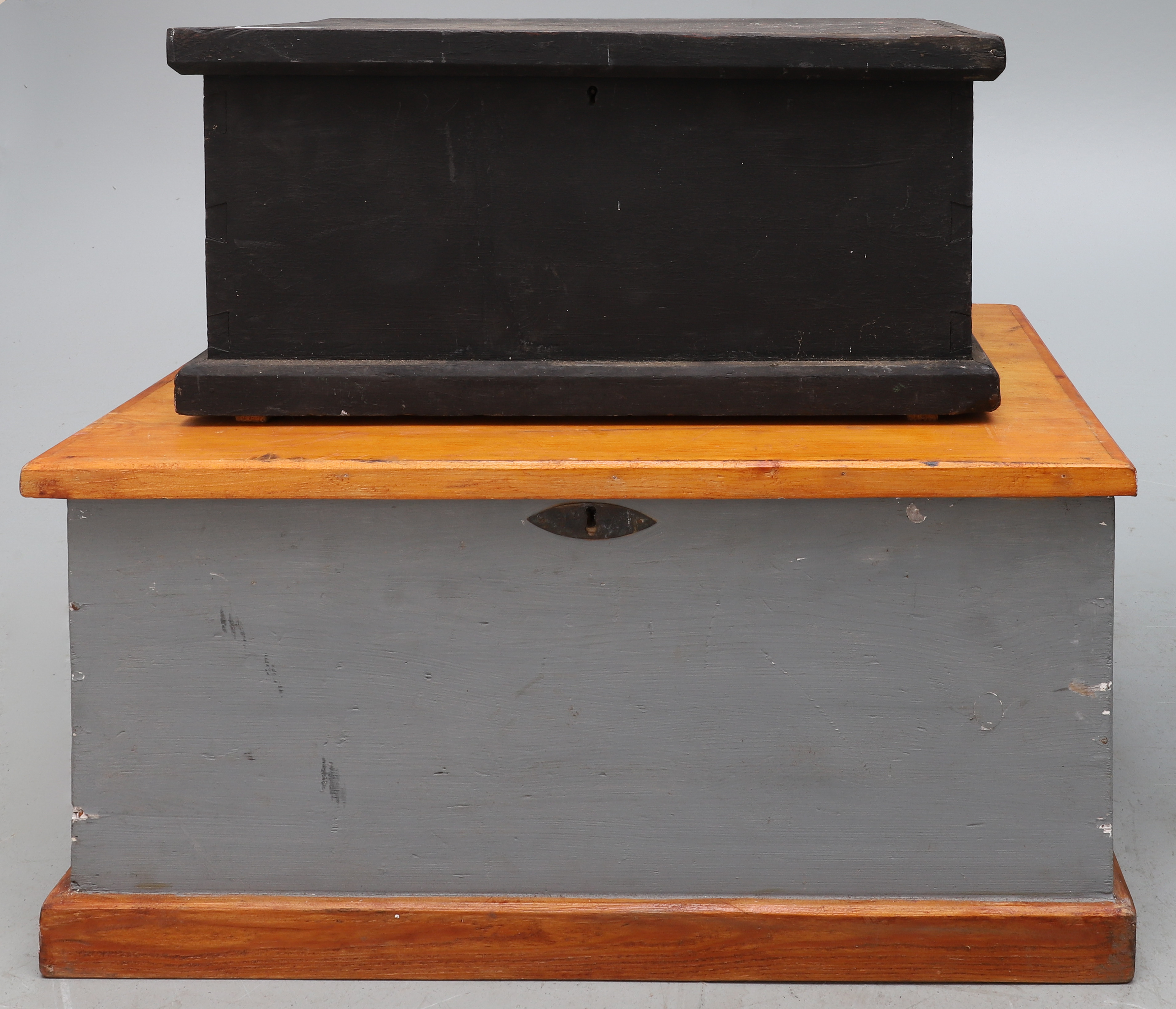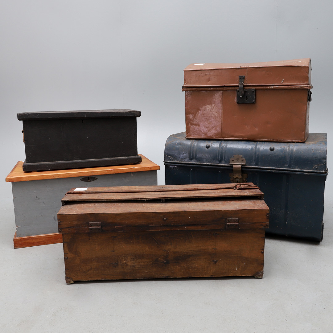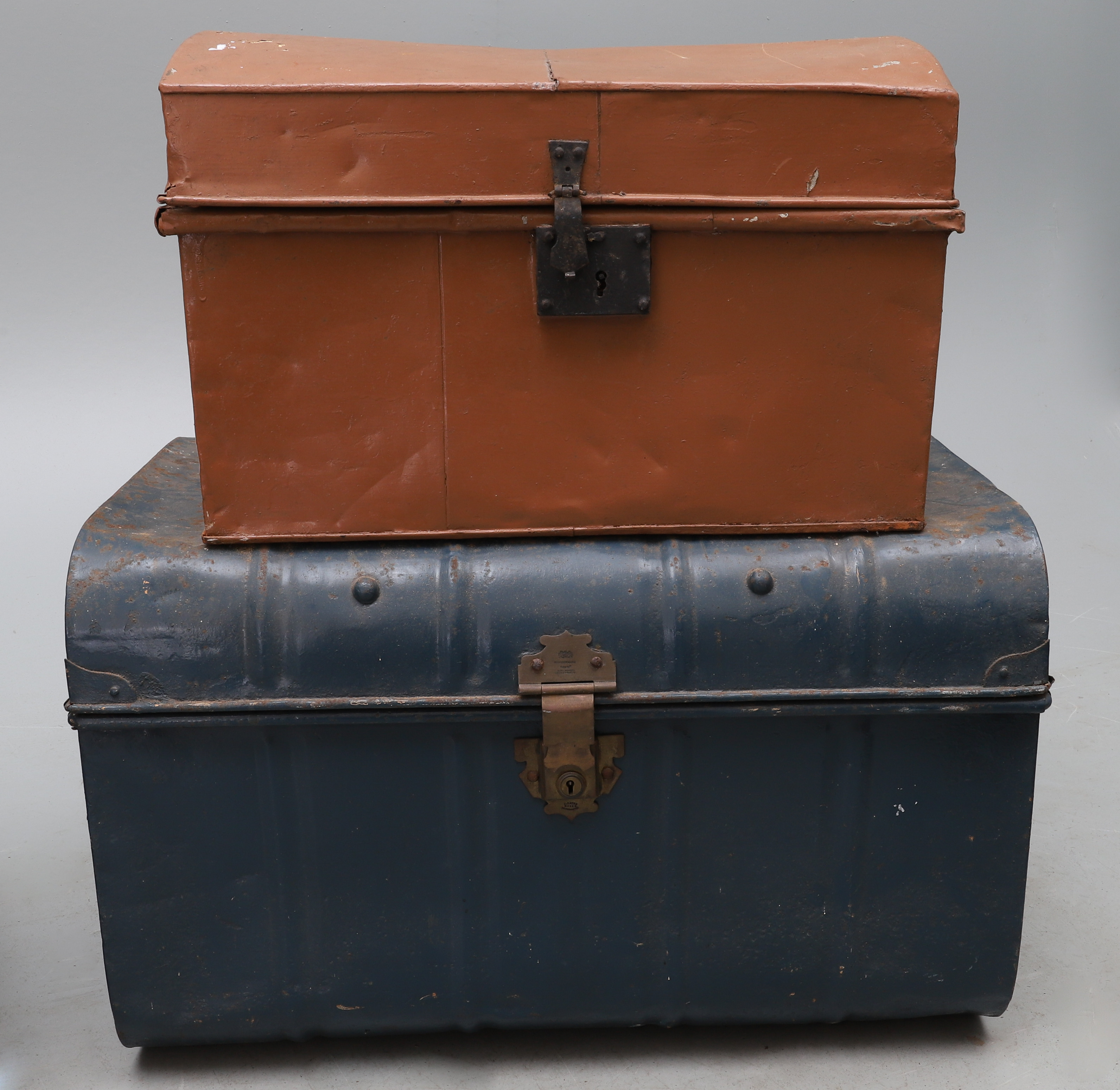 1908164. EN VINTAGE BLÅ METAL TRUNGE.