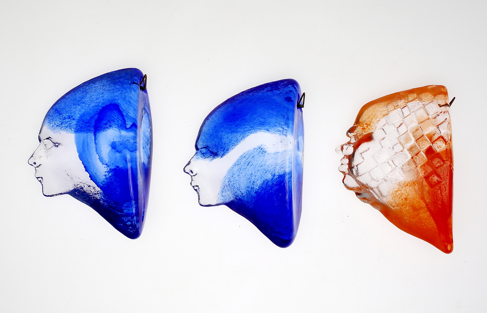 190897. KJELL ENGMAN. Kunstglas, Ansigter, 3 stk.