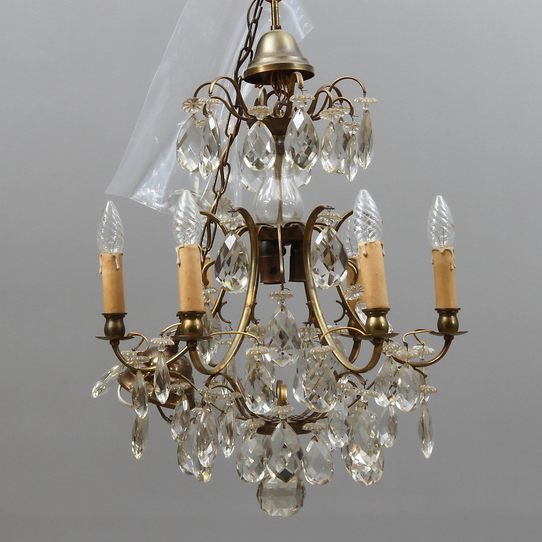 190975. Lysekrone, 6 lysarme, rokokostil, 20. århundrede.