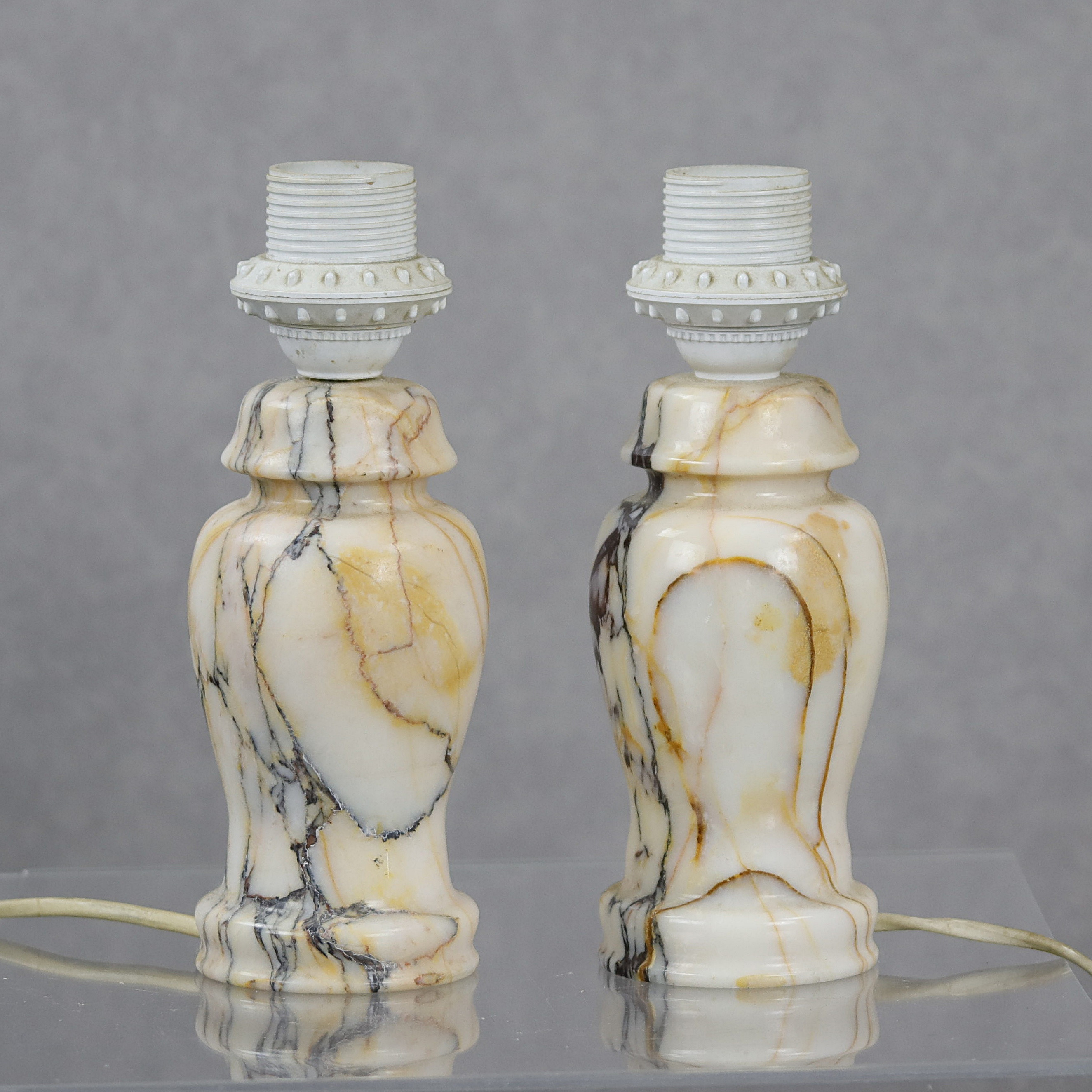 1912662. BORDLAMPER, et par, marmor, 1900-tallet.