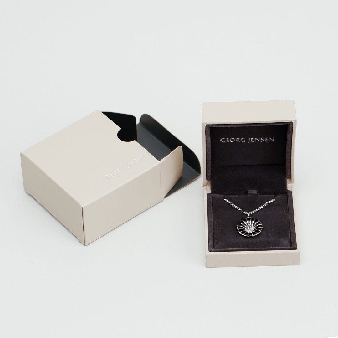 1915649. GEORG JENSEN. Halskæde, "Daisy" sølv og sort emalje.