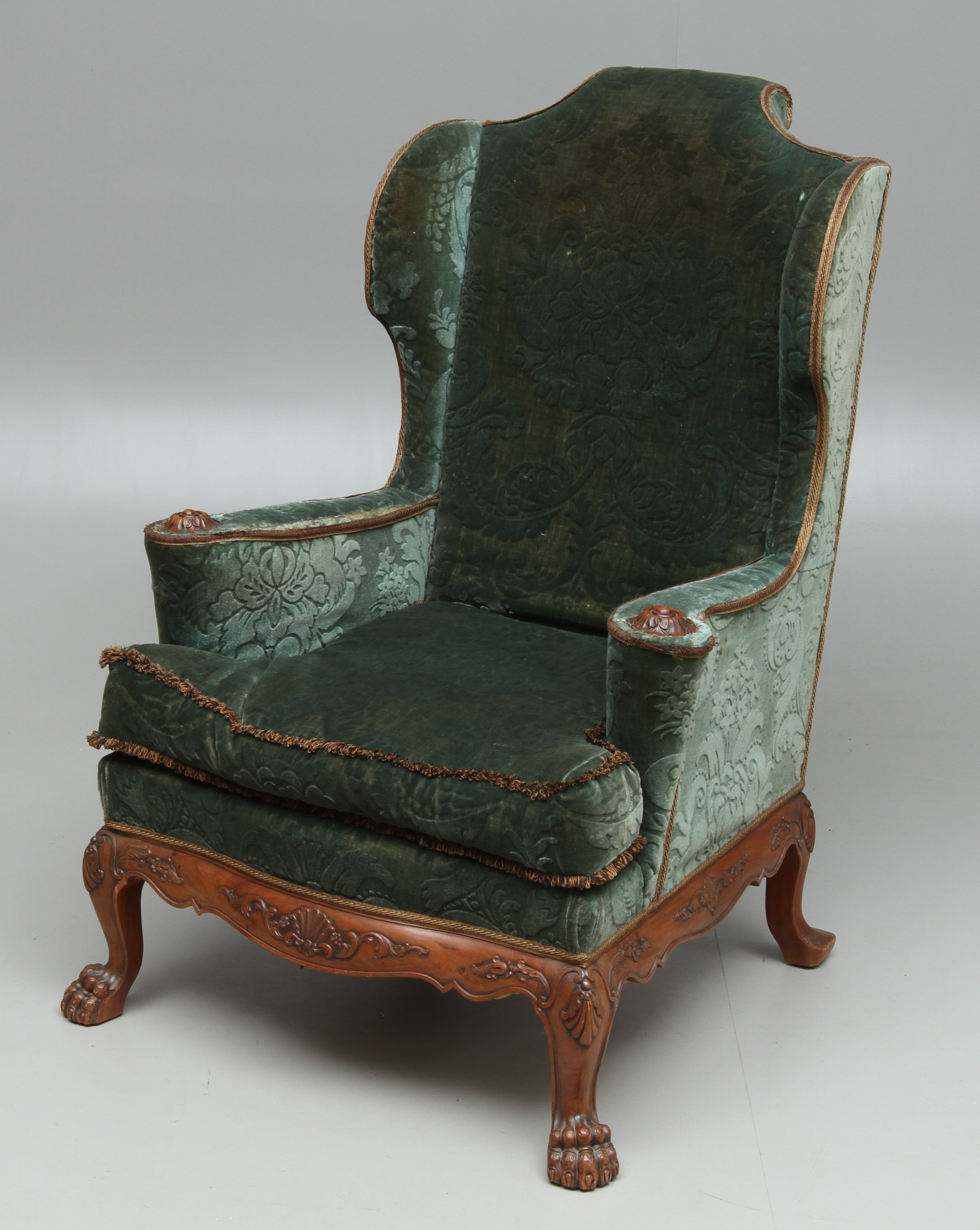 19159. ØRERING LÆNESTOL, kugle og klo, 20. århundrede.