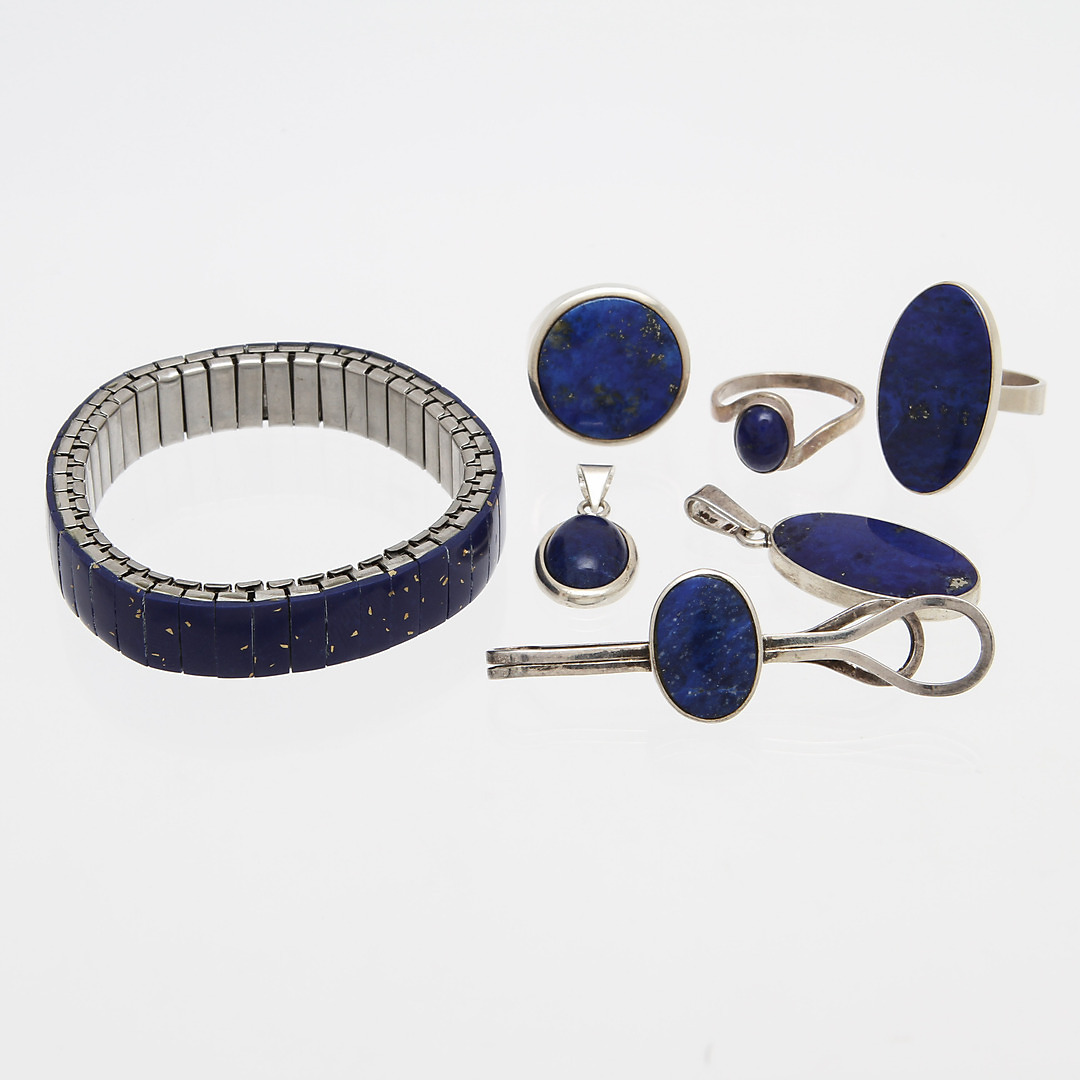 191651. SØLVSMYKKER, Lapis lazuli, dels FRA, Danmark.