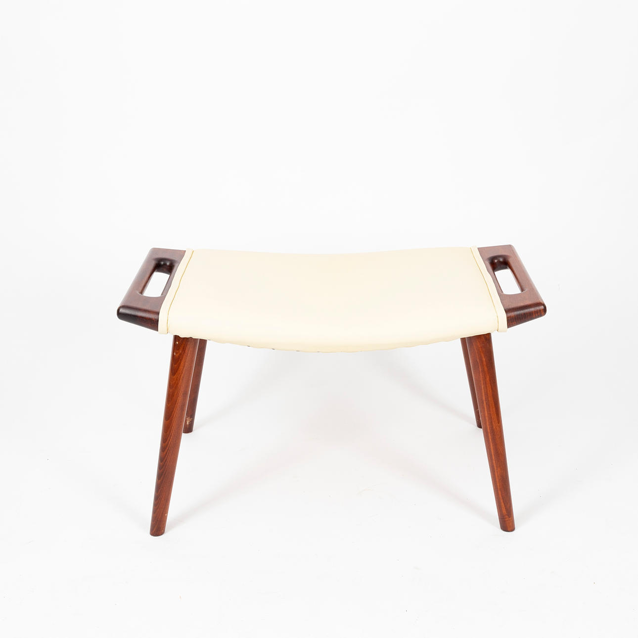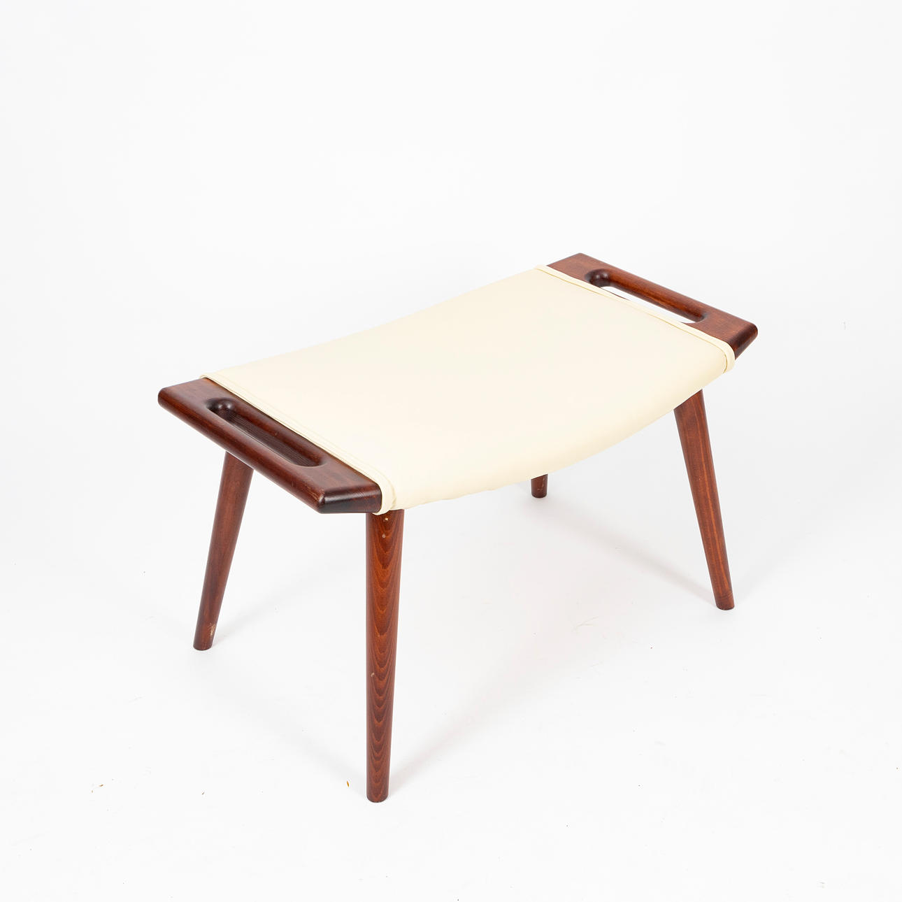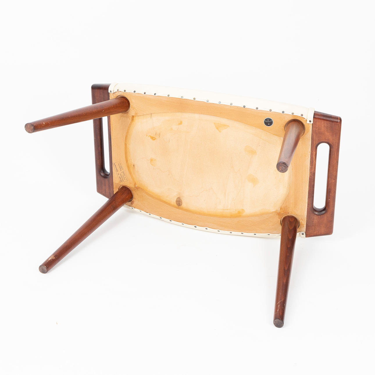 Bejdset bøg og hvidt læder. 71 x 41 cm, højde 41 cm.