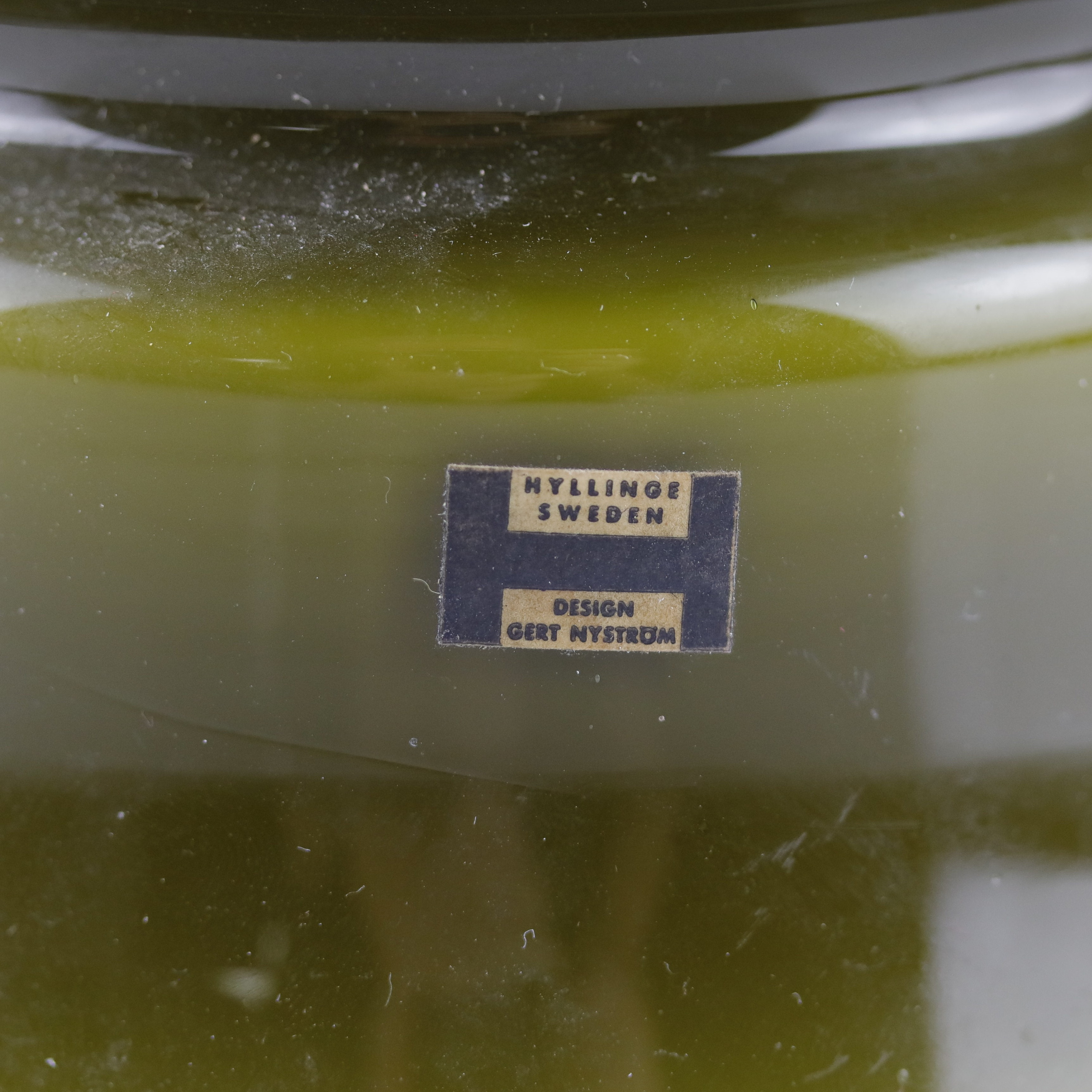 1919342. GERT NYSTRÖM. Bordlampe, grønt glas, hylde.