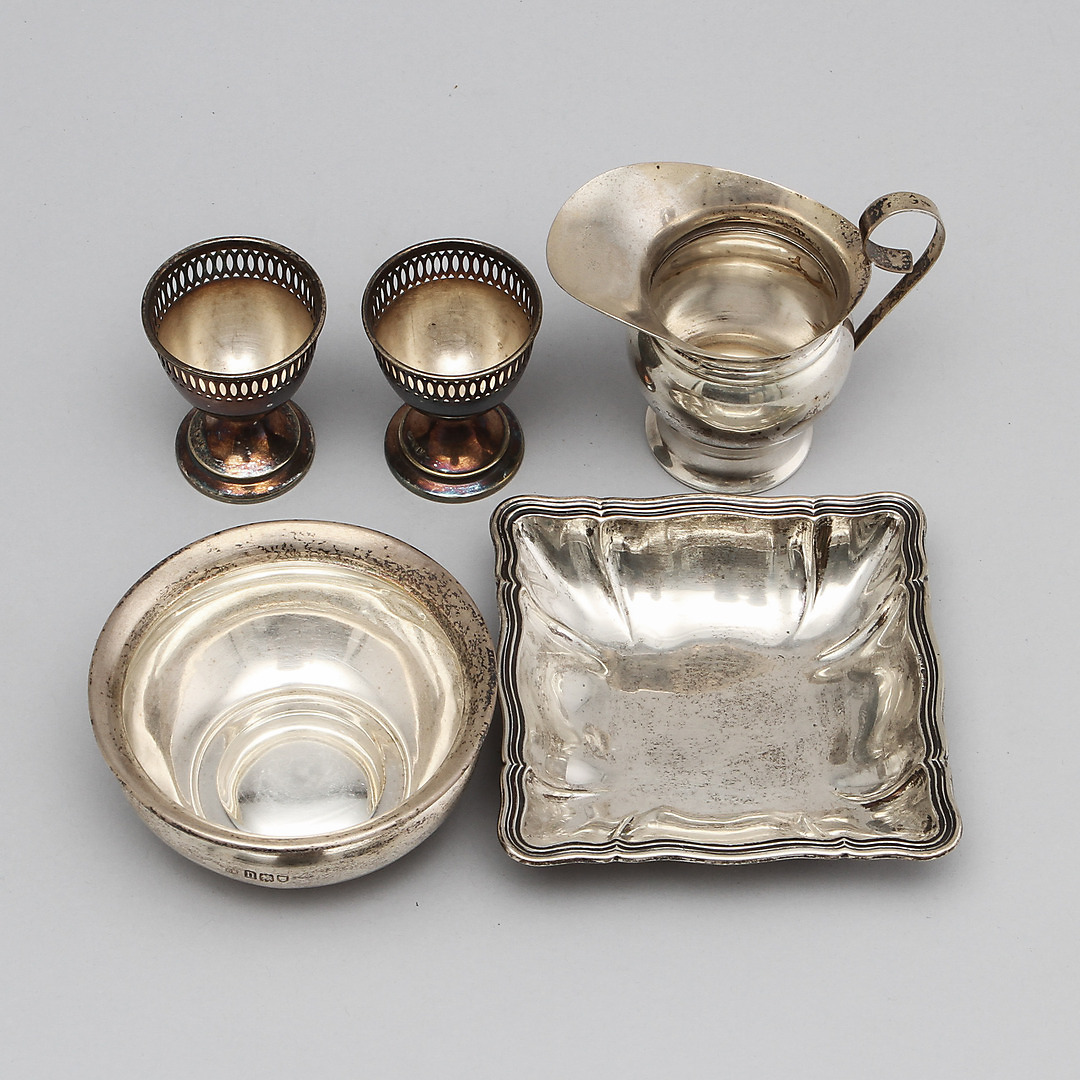 192233. SØLVVARER, 5 dele, sølv, vægt ca 270 gram.