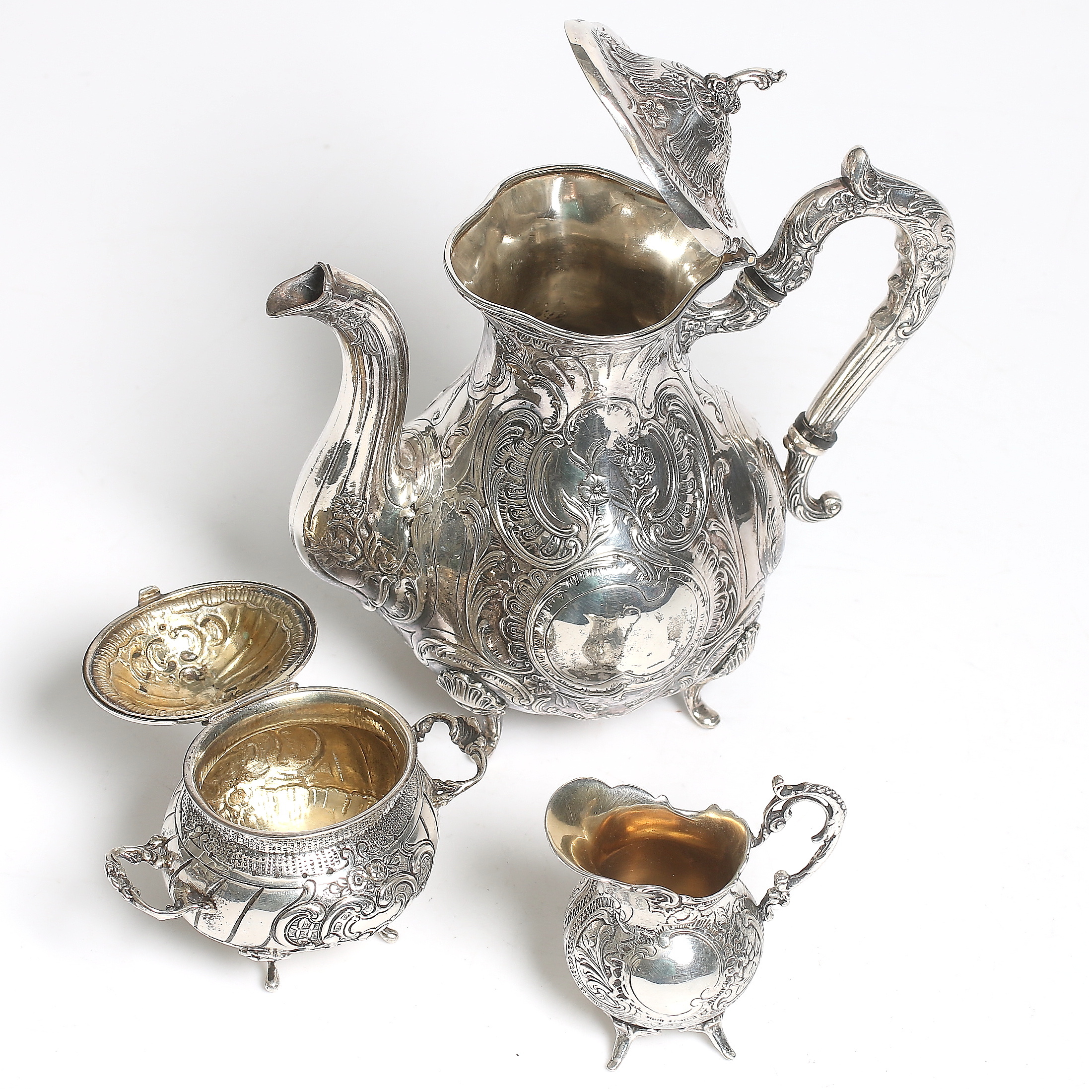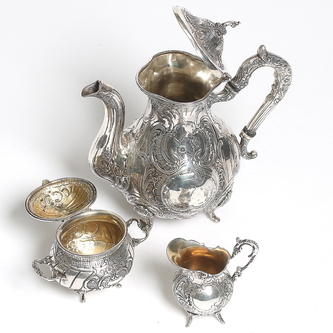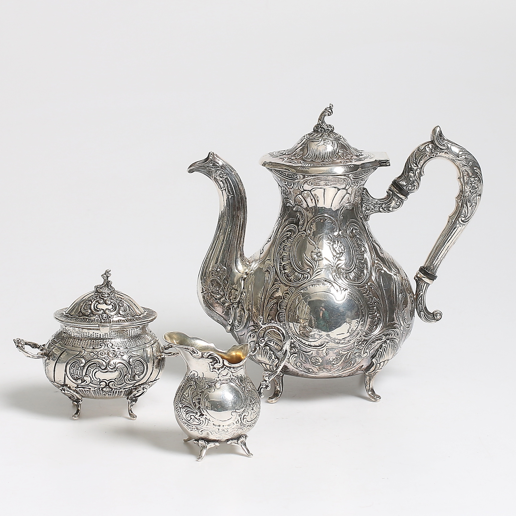 192293. MOCCASERVIS, 3 dele, sølv, GEWE, 1964. Vægt 920 gram.