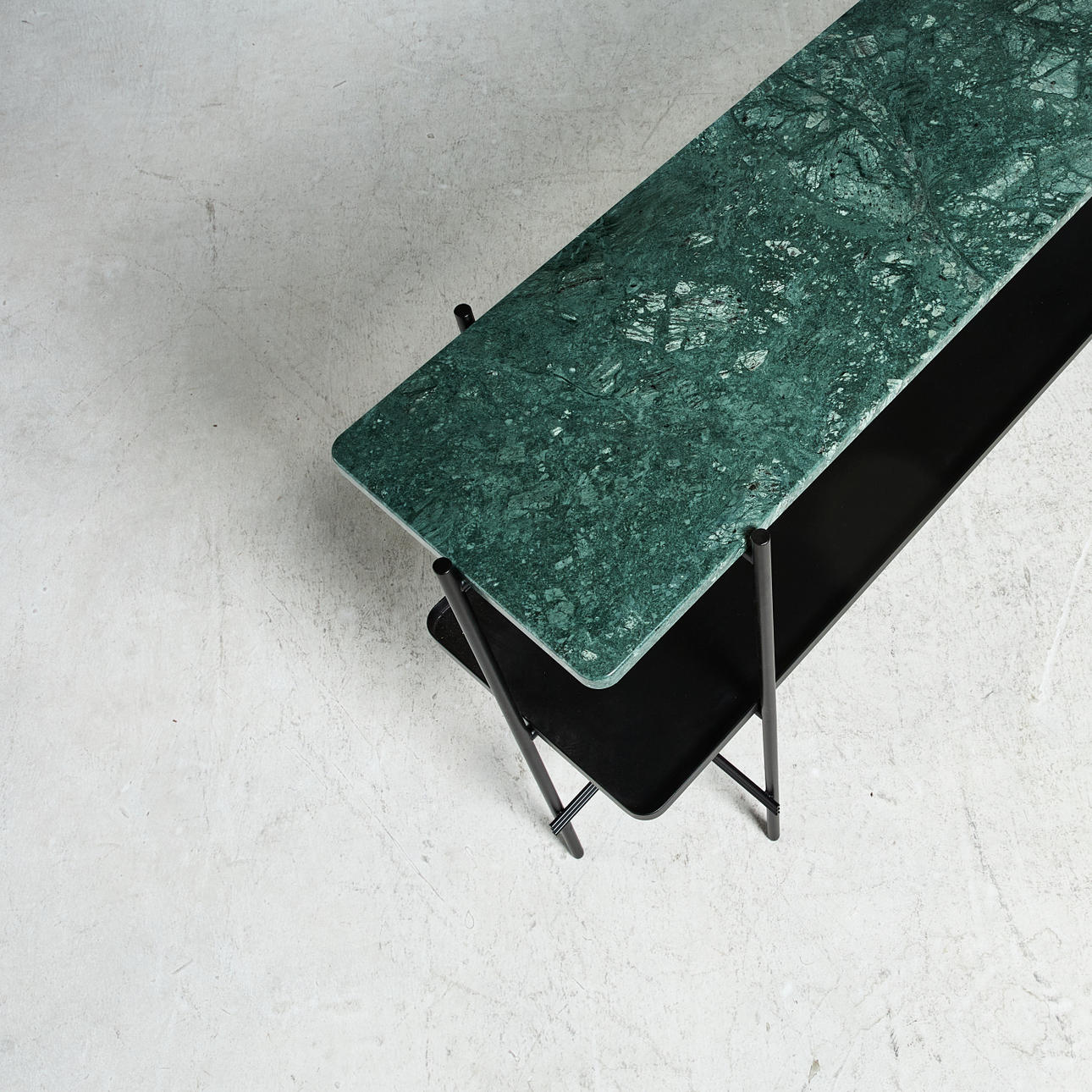 1925275. GAMFRATESI. Hylde, "TS Console", stål og grøn marmor, til Gubi, moderne.
