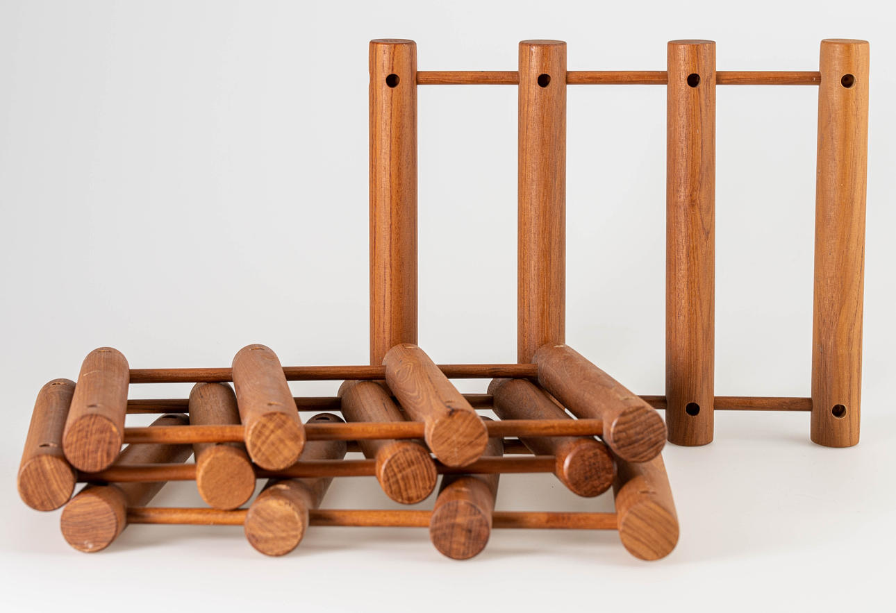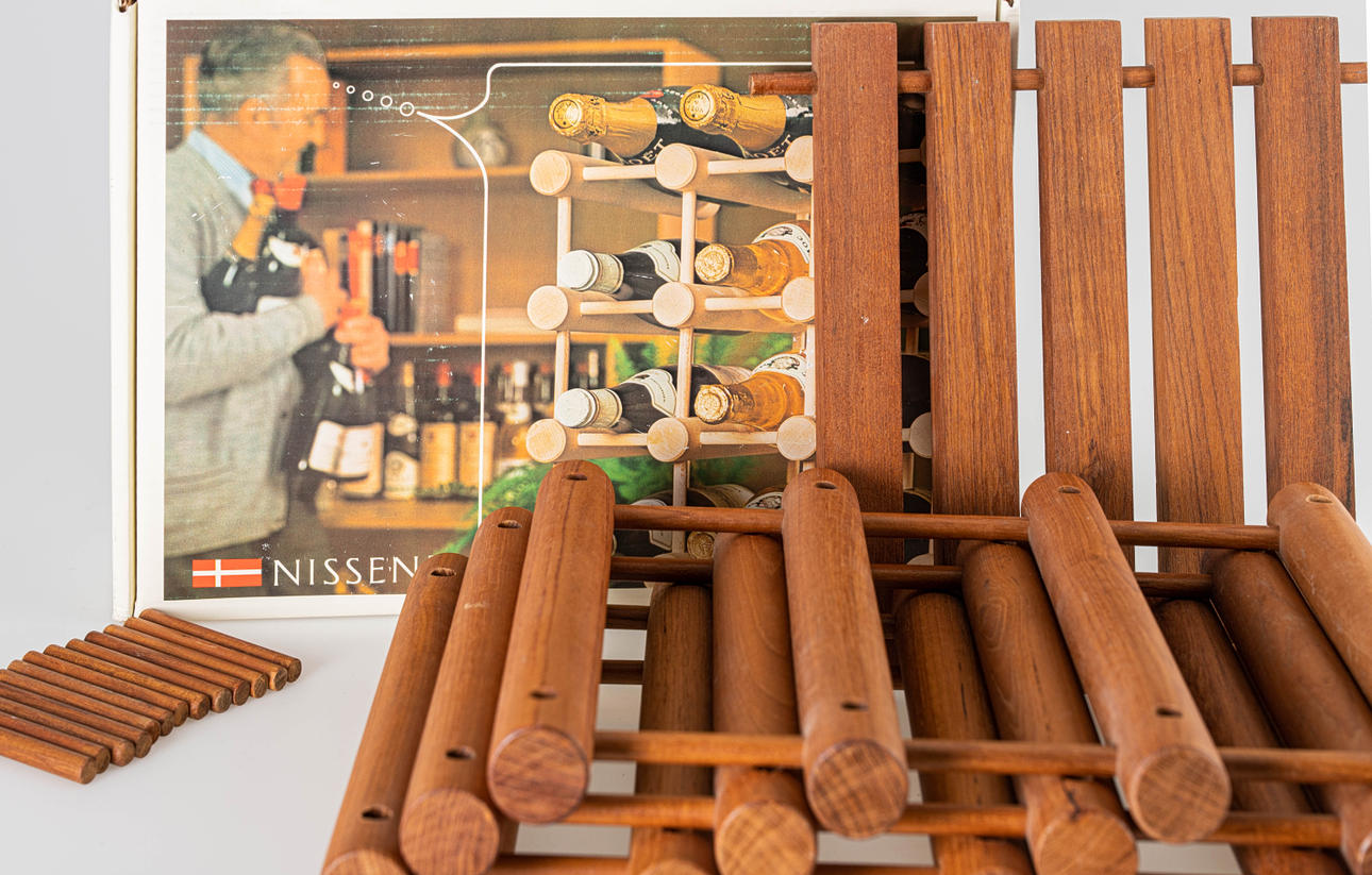 Danmark, 1960'erne. Teaktræ. Til 12 flasker. I original æske. HxBxD: 39x34x28cm. Derudover en coaster lavet af teak 30x28cm.