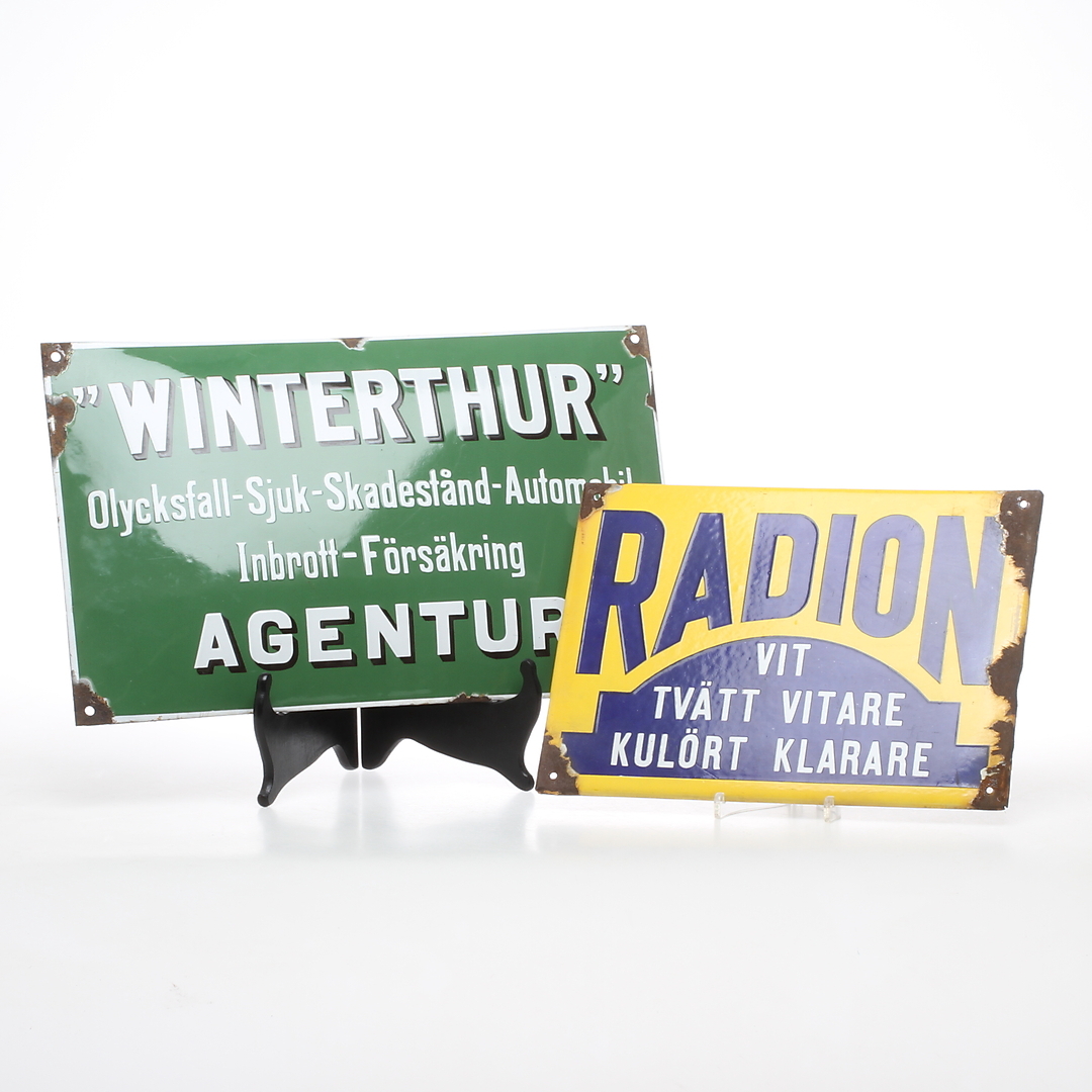 192838. EMAJELSKILTE, 2 stk, Winterhur og Radion.