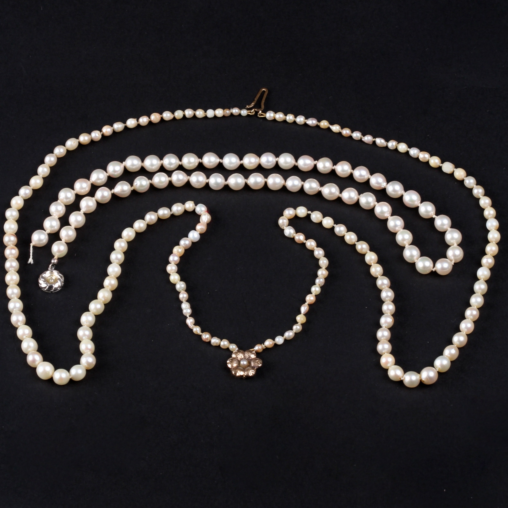 192933. PERLEKÆDE, 2 stk. Med sølv og guld lås 9 k.