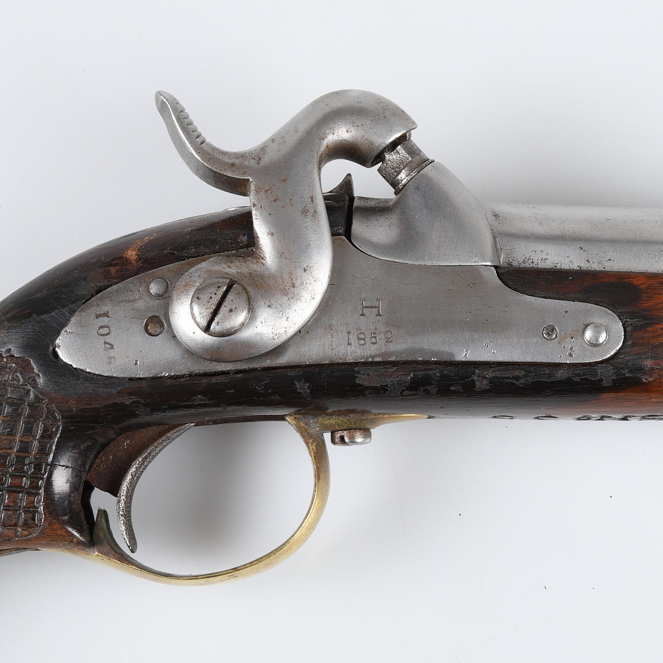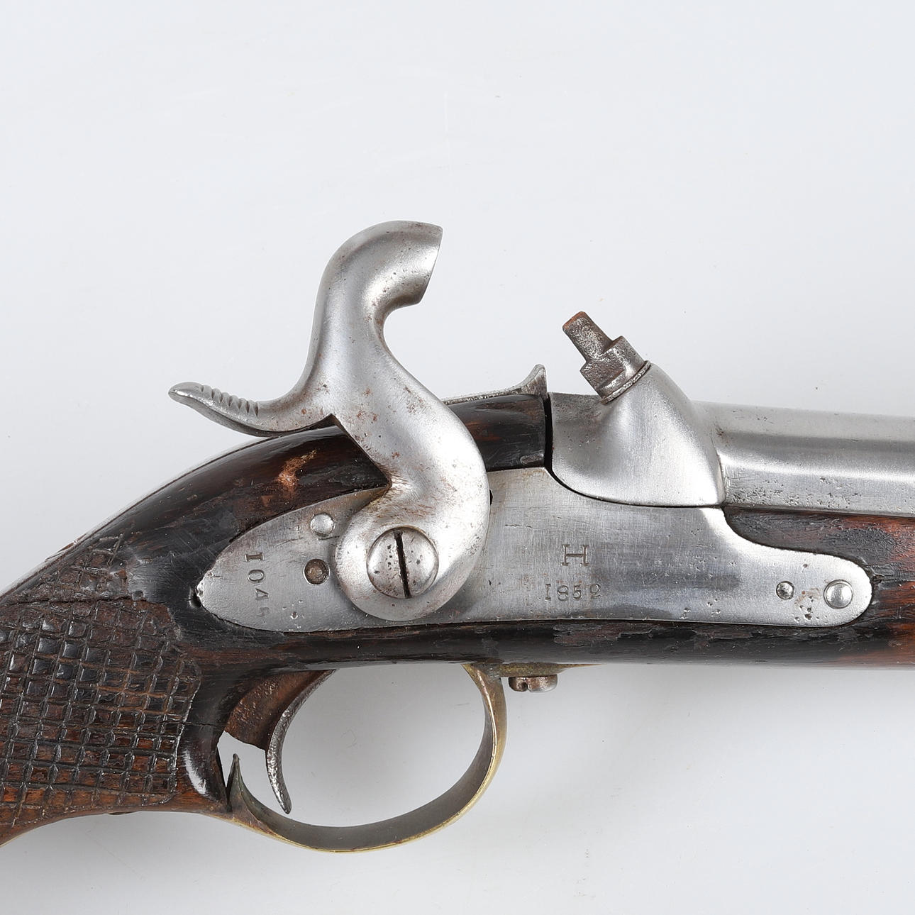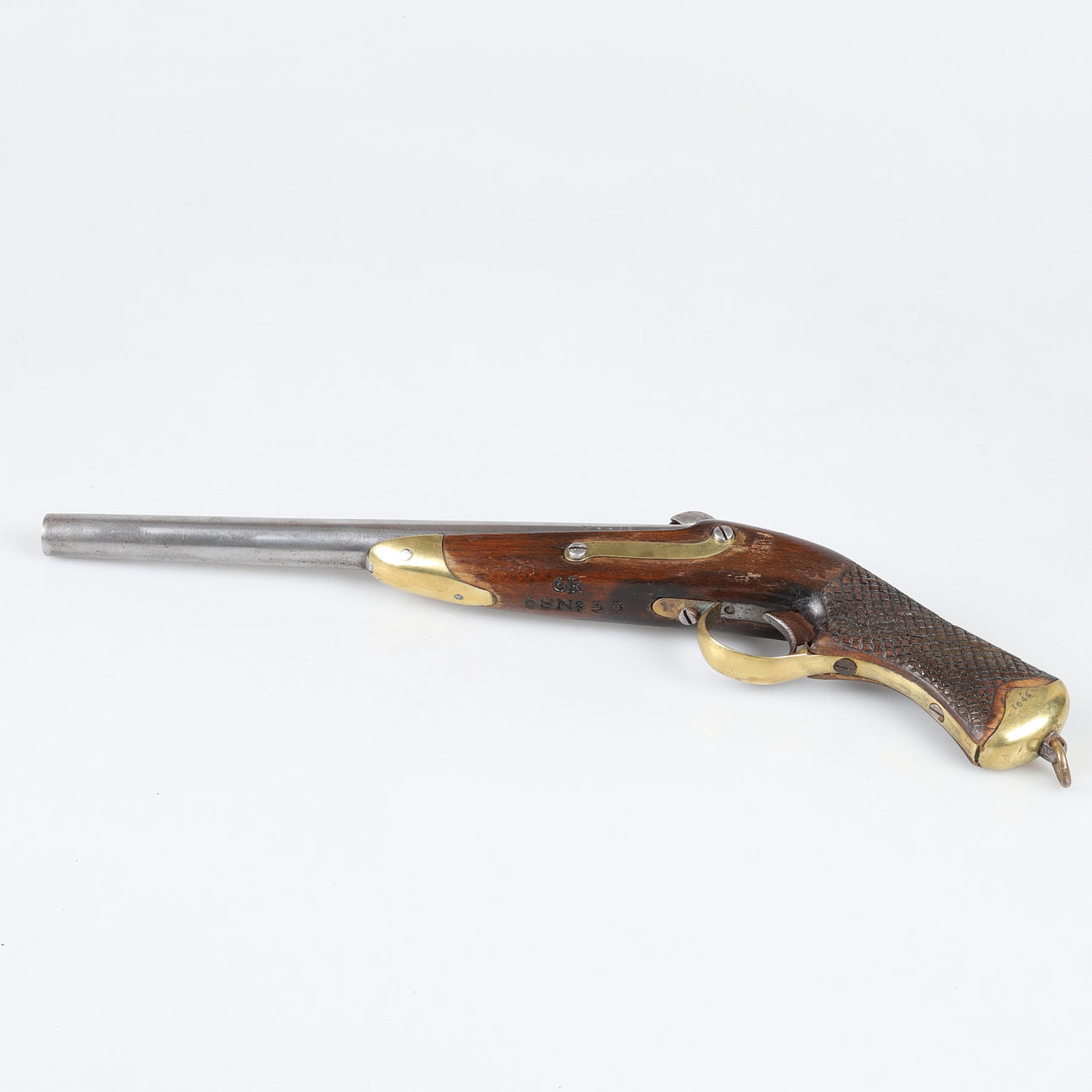 Mærket H 1852, 104 6R 6 S No 35 Nyere aftageligt stempel Længde ca 45 cm, længde med aftageligt stempel ca 70 cm.