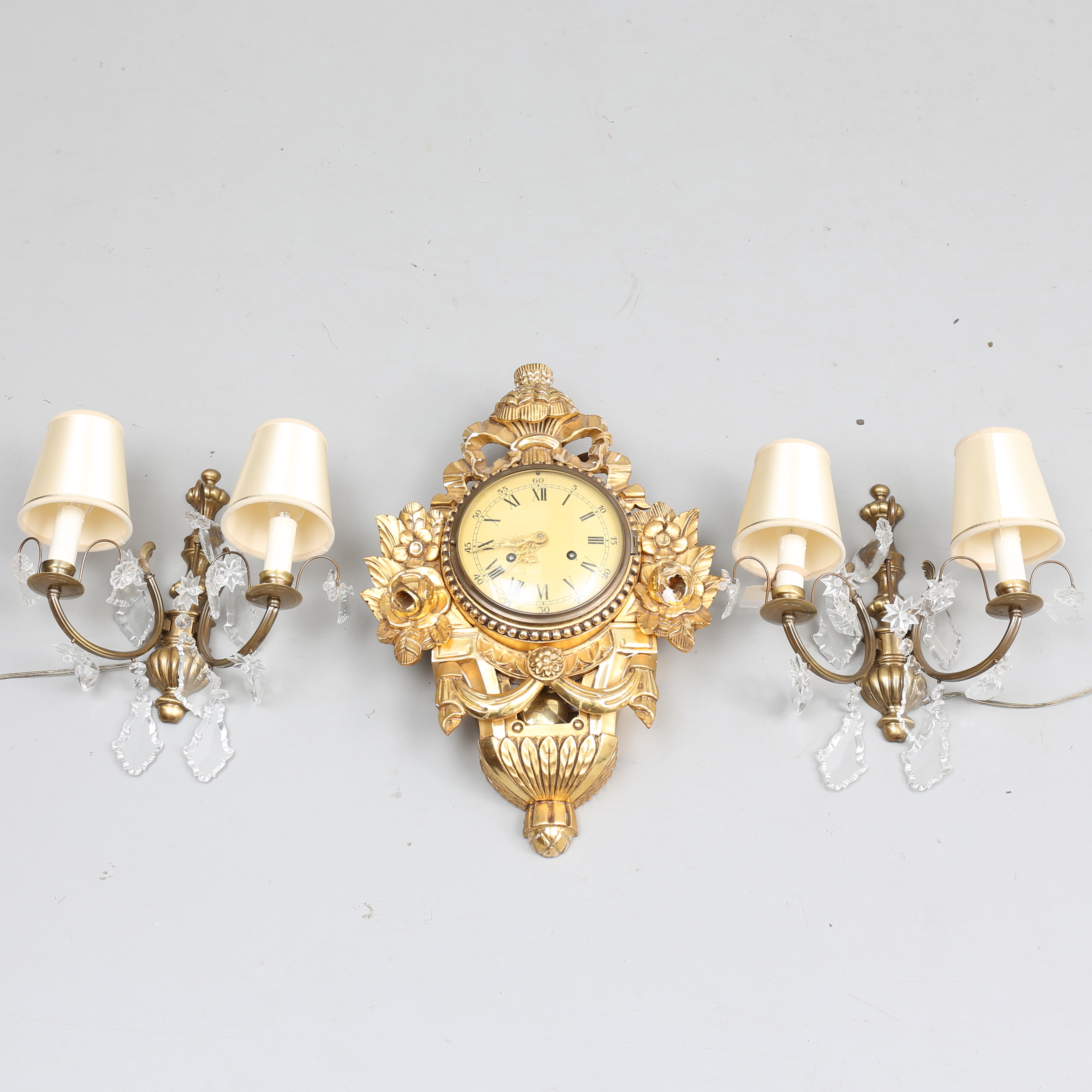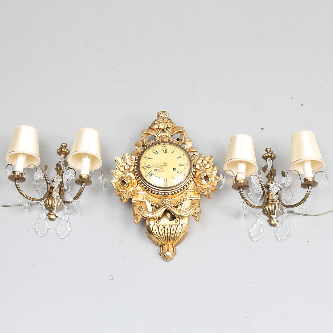 194105. PENDUL og 2 LAMPETTER, 20. århundrede.