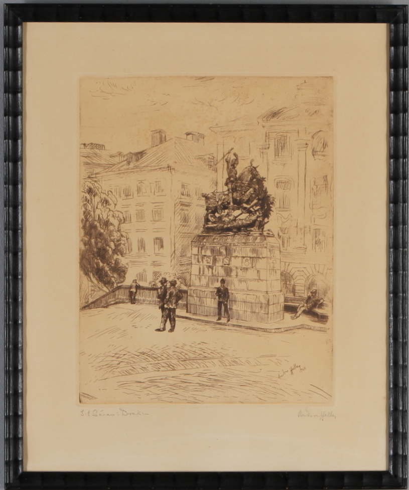 194372. ANDERS HELLER. radering, St Göran og dragen, signeret.