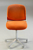 Design: 1970'erne. Sæde og ryg af glasfiberforstærket polyester, betrukket med orange velourstof. Tilbagelænet ryglæn. HxBxSh: 87x45x51cm.