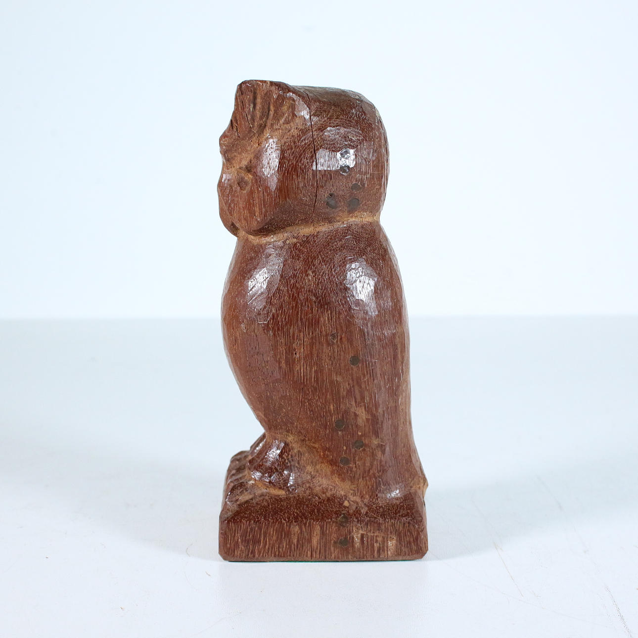 Ugle, skulptur, udskåret i træ, mål ca.: H. 22 cm, B. 8,5 cm, D. 8,5 cm.