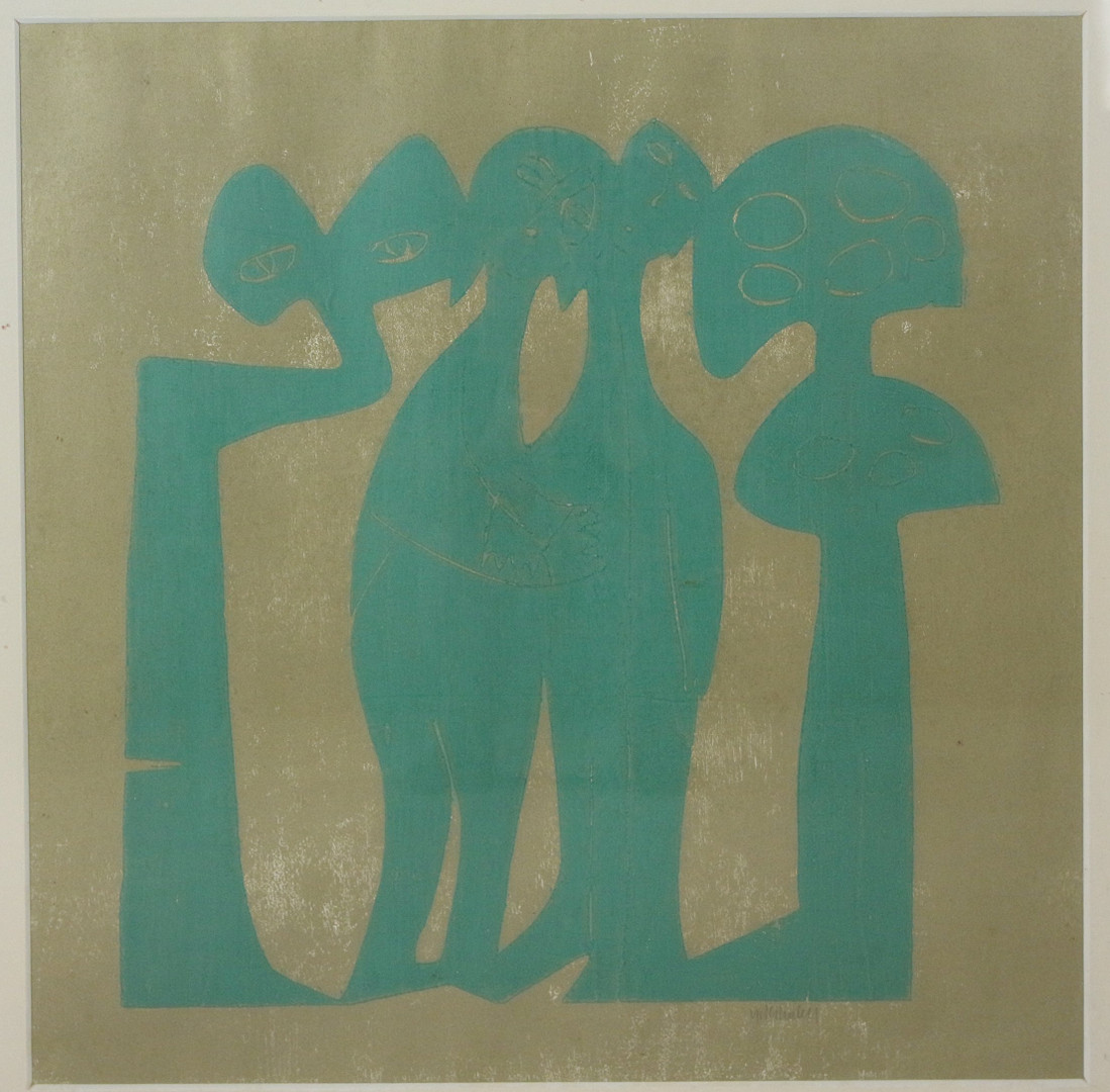 1958727. HAP GRIESHABER (BK). 'Truede par', farve træsnit.