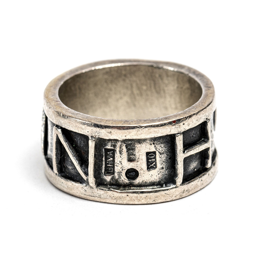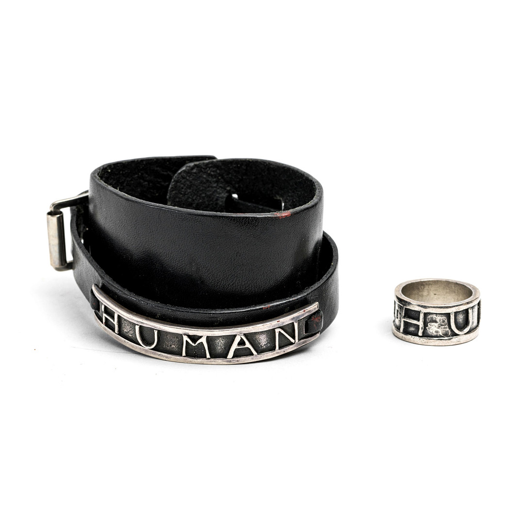 1963693. EFVA ATTLING, ring og armbånd med læder, "Human", sølv.
