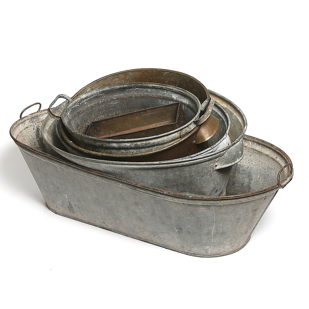 196669. ZINK BALJOR, 5 stk, 18 / 1900 tallet.
