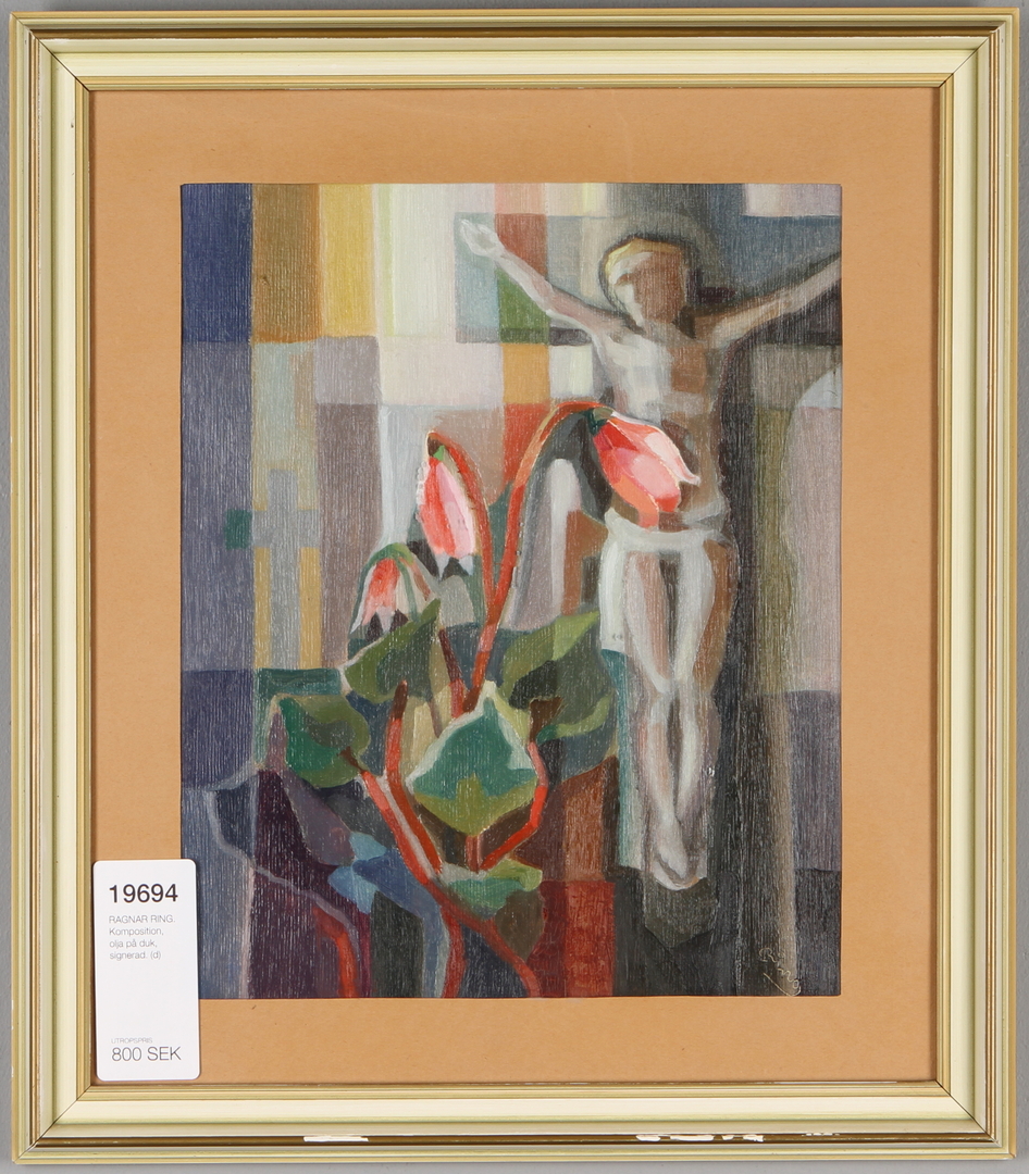 19694. RAGNAR RING. Komposition, olie på lærred, signeret.