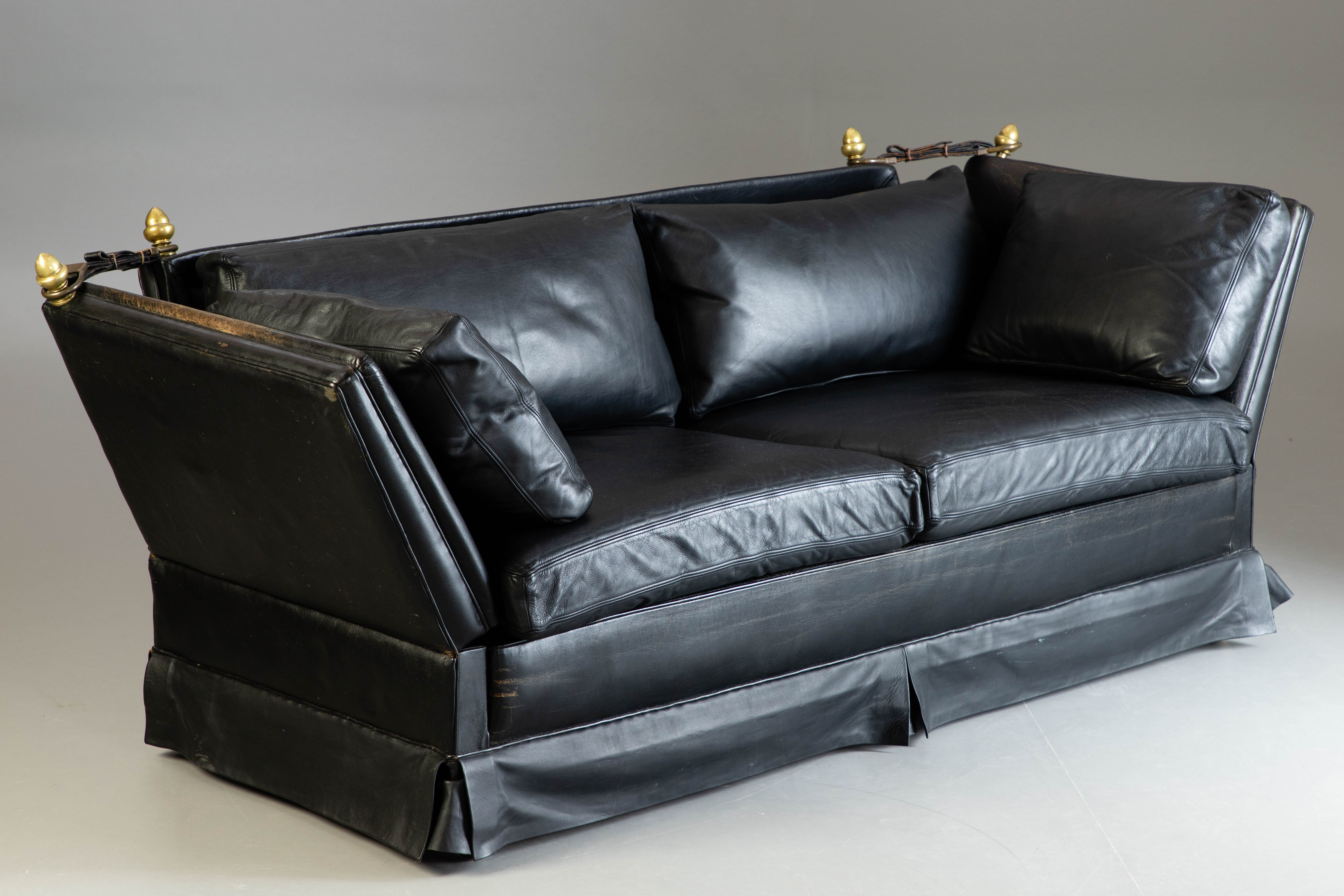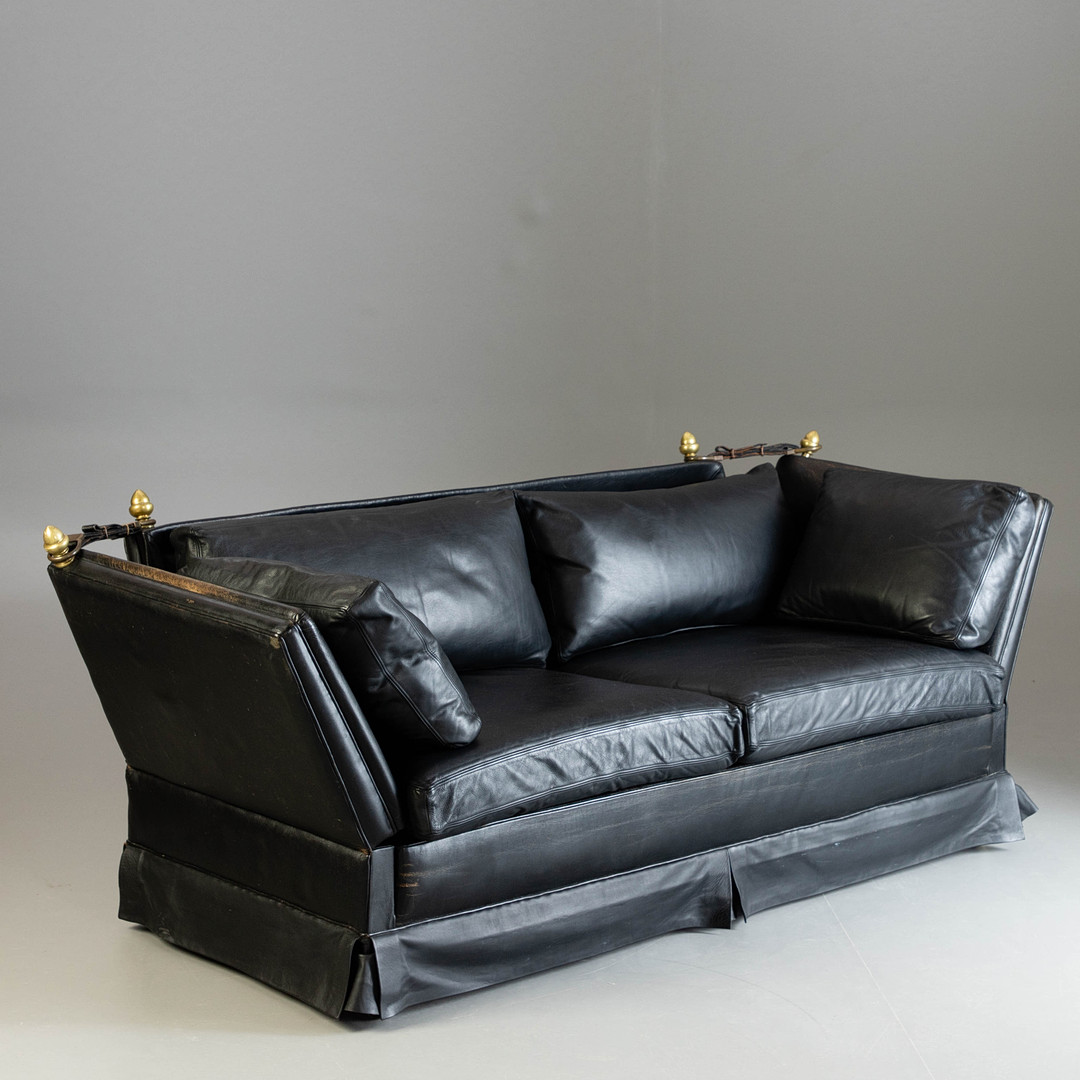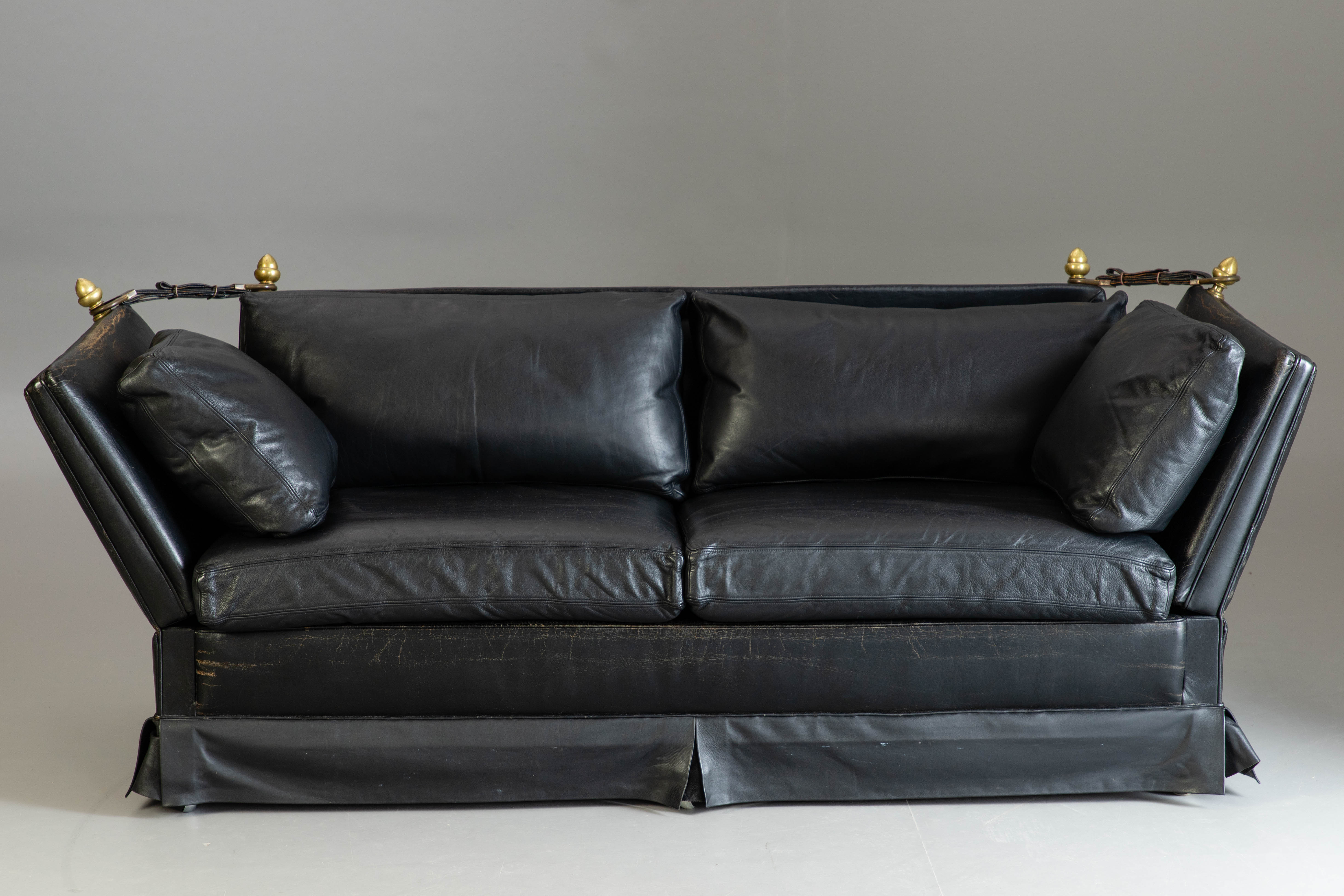 1969591. 2 personers sofa, sort læder, 2. halv 20 århundrede.