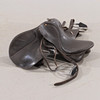 Brunt kunstlæder, stropper til stigbøjlerne i læder.