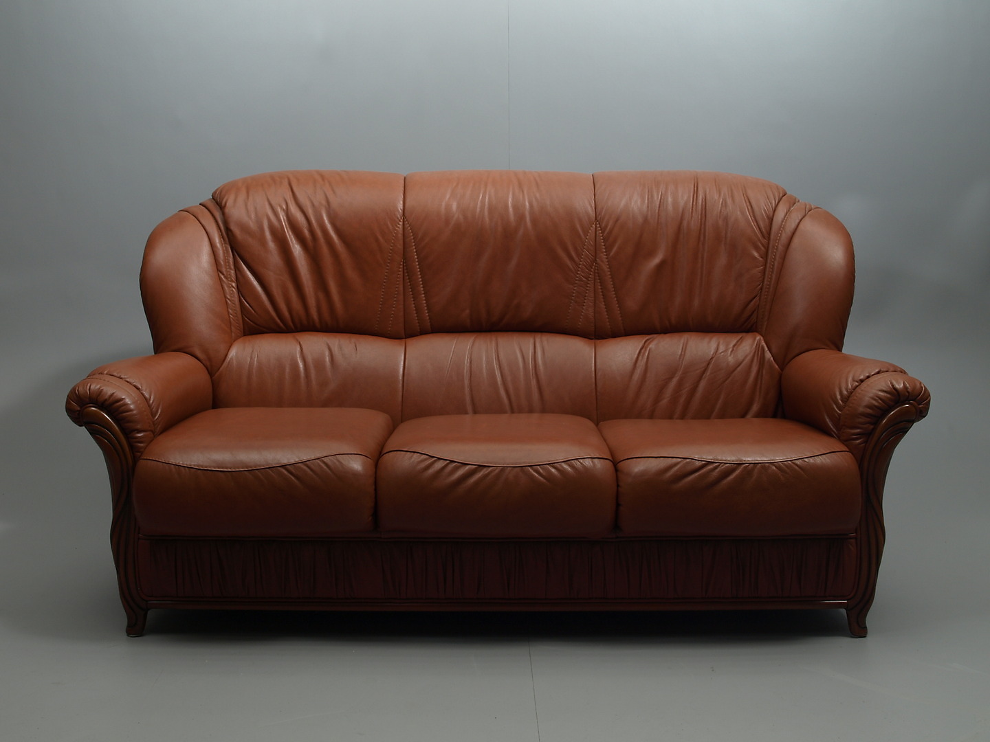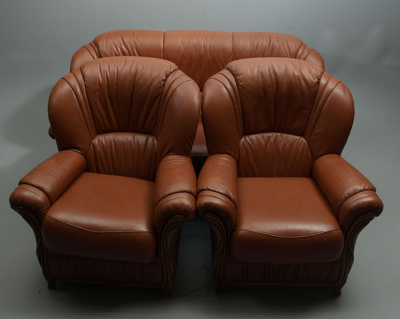 197787. SOFAGRUPPE, 3 dele, brunt læder.
