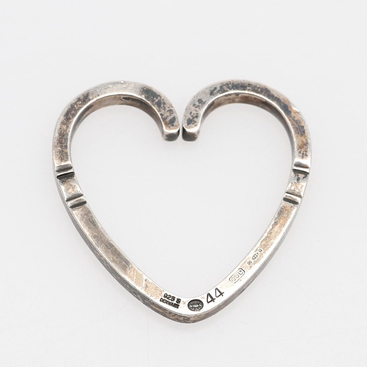 I form af et hjerte, sterlingsølv, stemplet Georg Jensen model nr. 44 og med britiske importstempler, højde 4 cm.