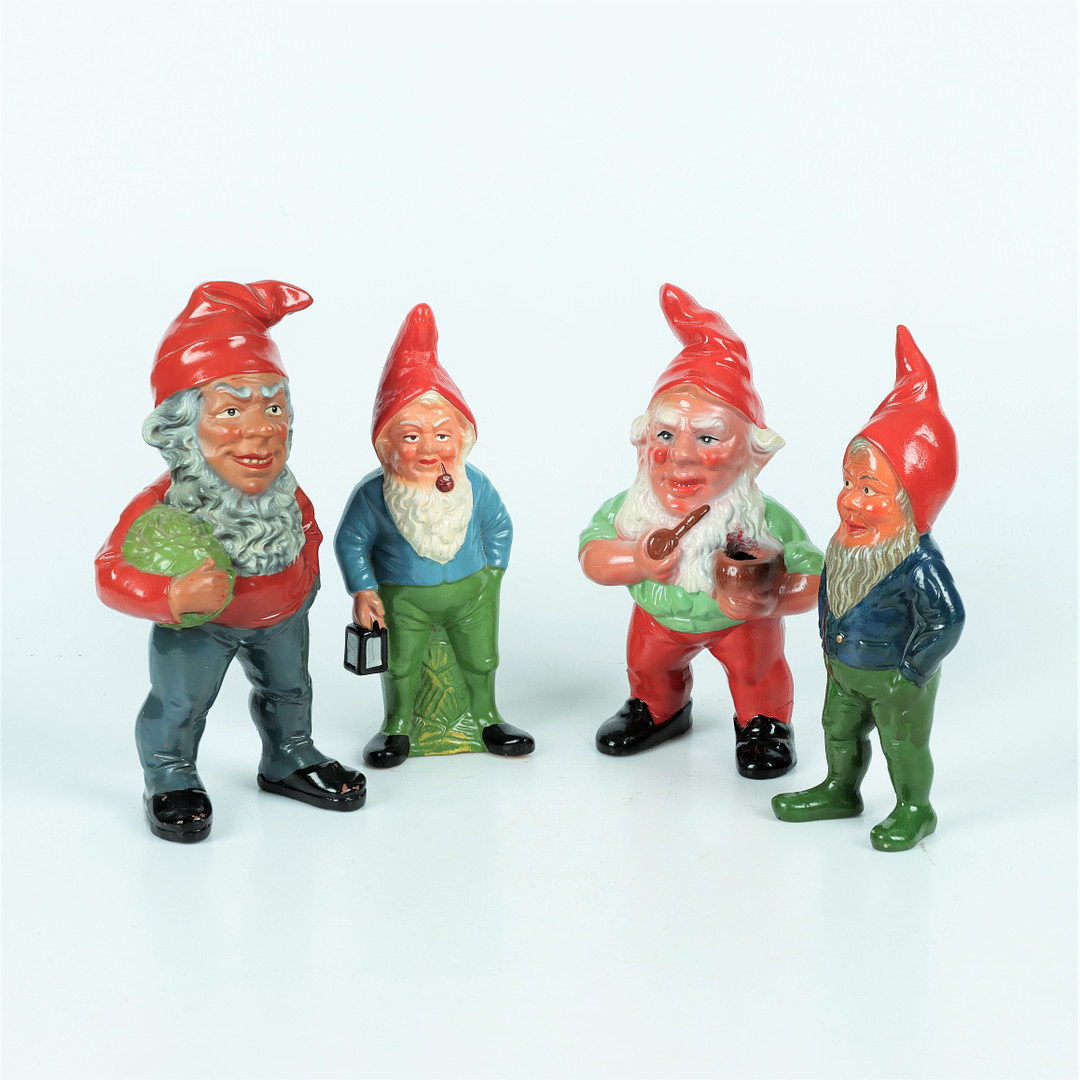 1978844. TOMTAR, 4 stk, malet keramik, århundredeskiftet 1900.