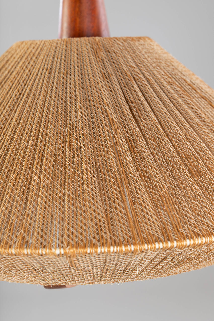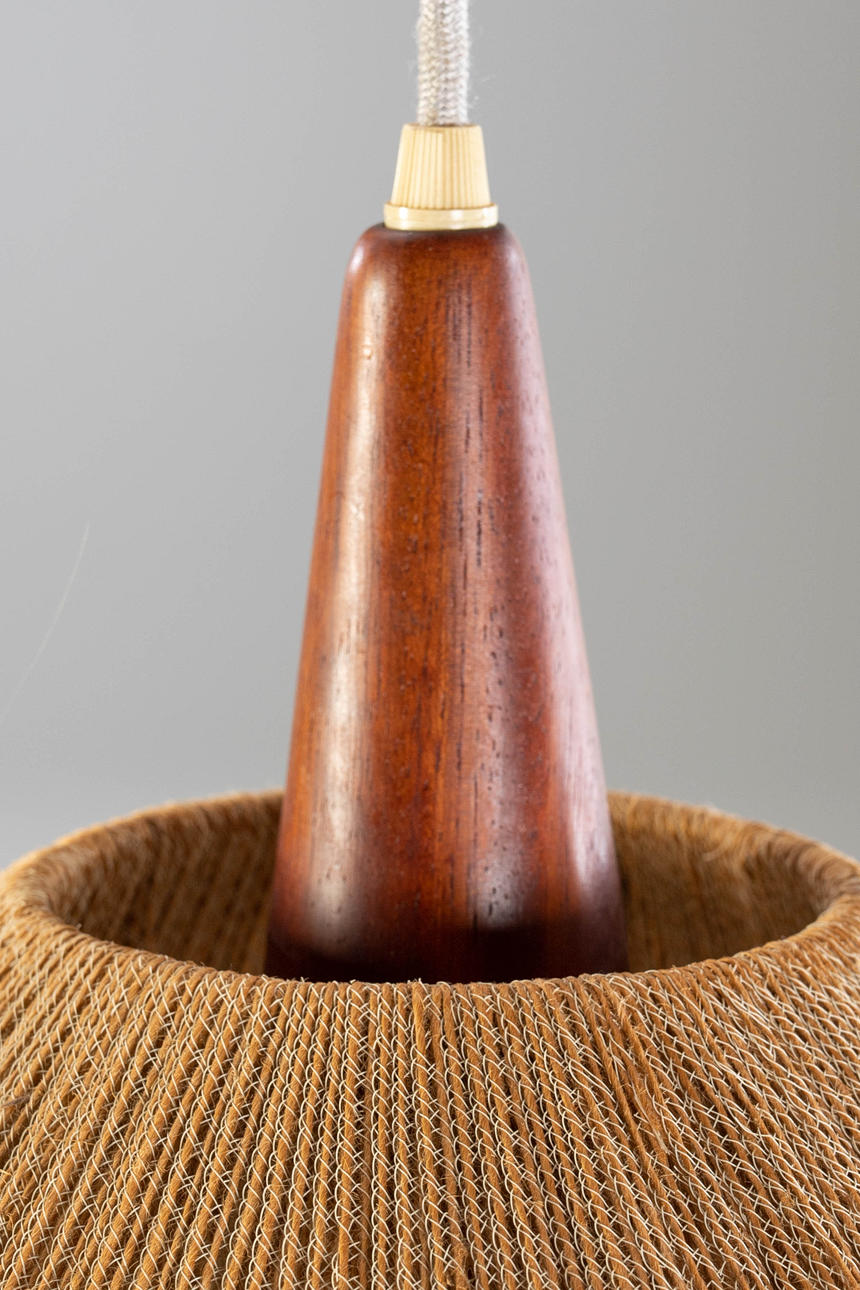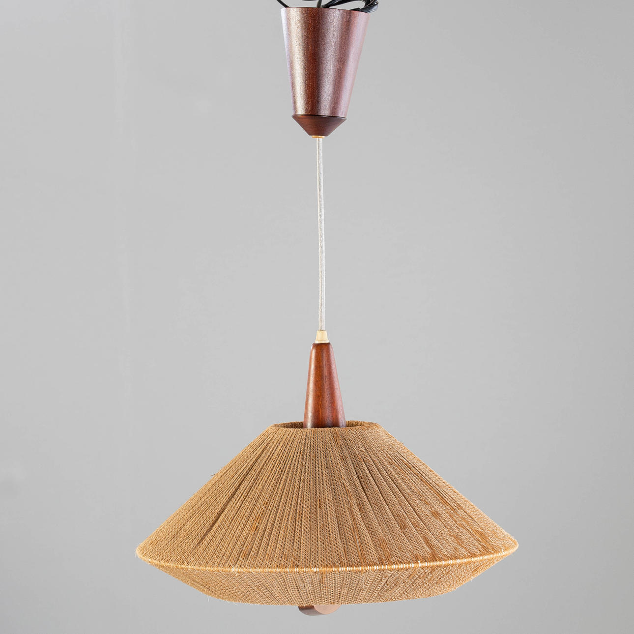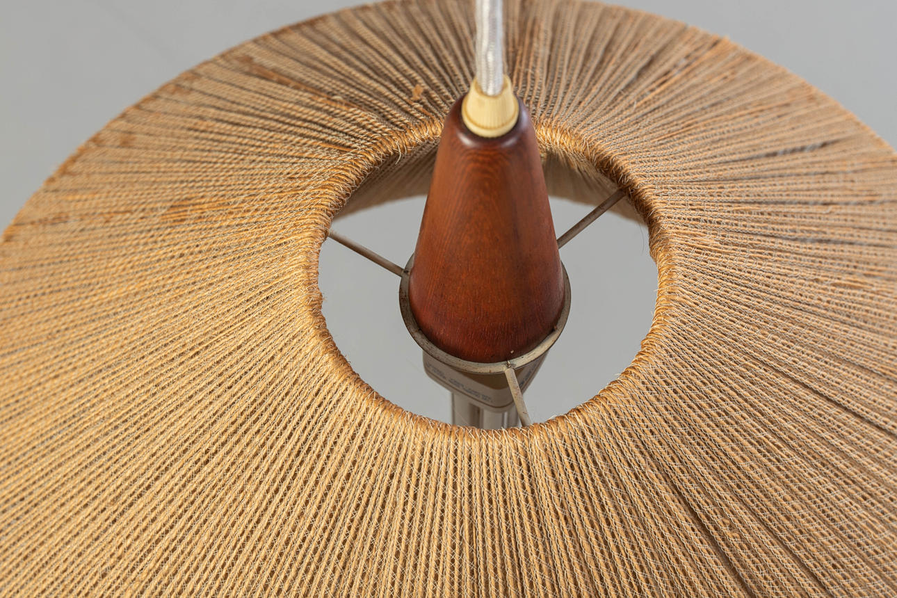 Tyskland, 1960'erne. Højde justerbar. Lampeskærm af sisal med teak-elementer. H. 32 cm, Ø 45 cm.